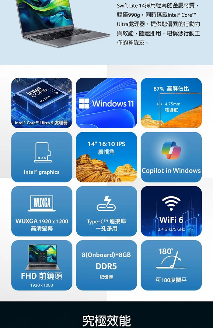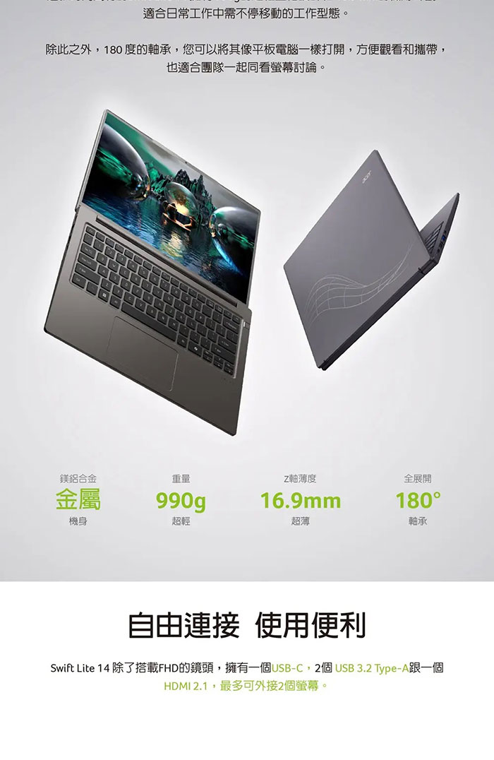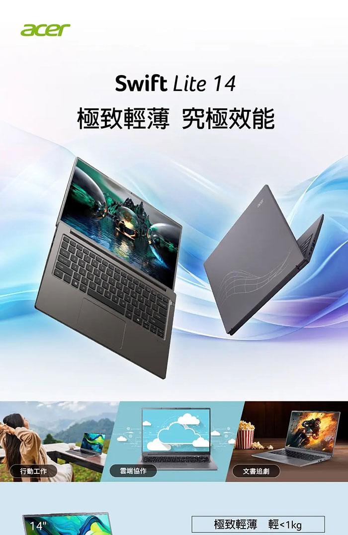 Acer Swift Lite|SFL14-41M-R1MR 14吋效能輕薄筆電(R5-240/32G/512G/W11)