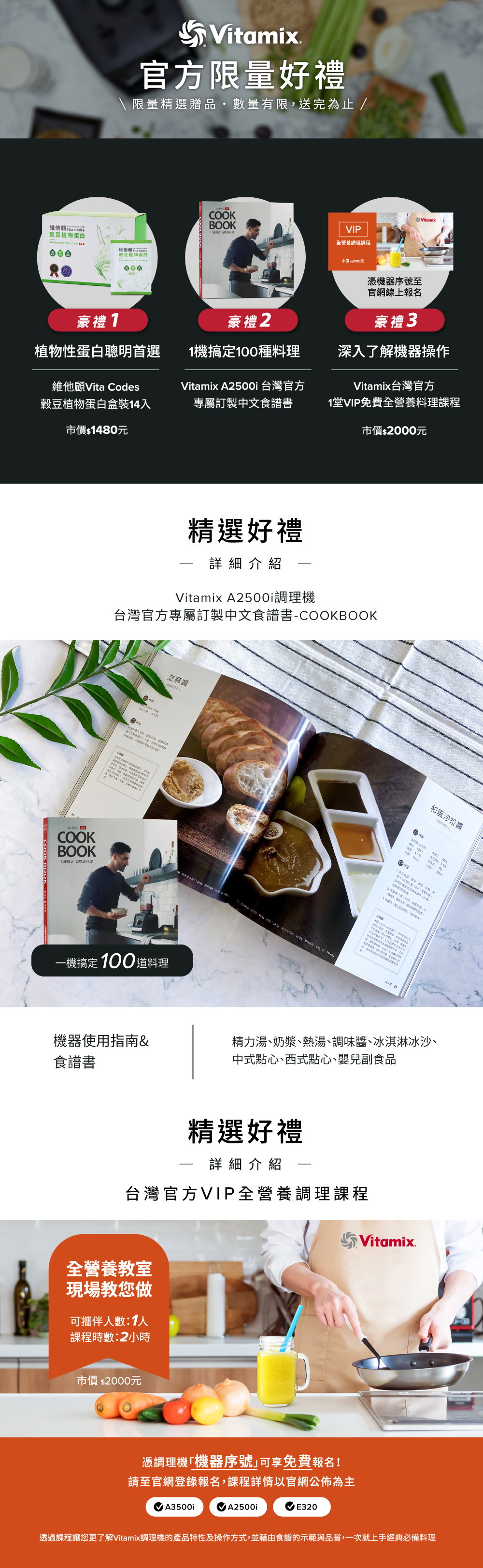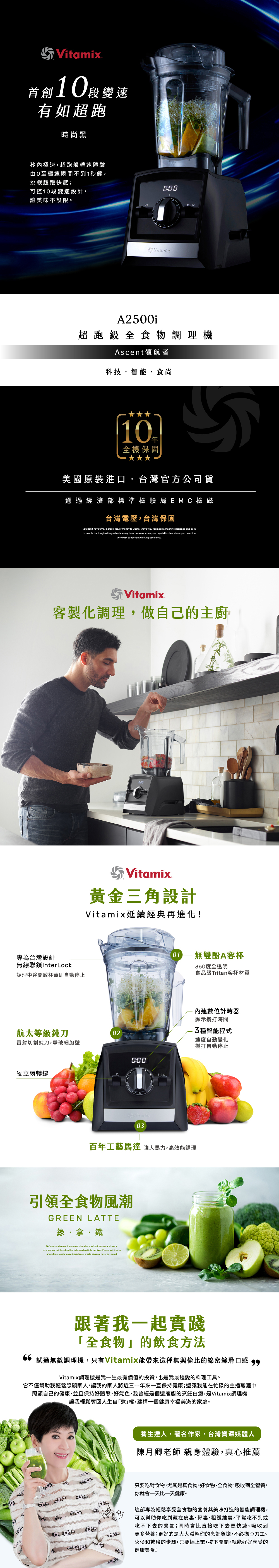 【送穀豆蛋白盒裝組】美國Vitamix超跑級全食物調理機Ascent領航者A2500i-時尚黑-台灣公司貨-陳月卿推薦