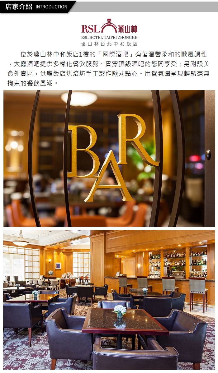代收代付-【享樂券】瓏山林台北中和飯店1F 國際酒吧西式單人套餐