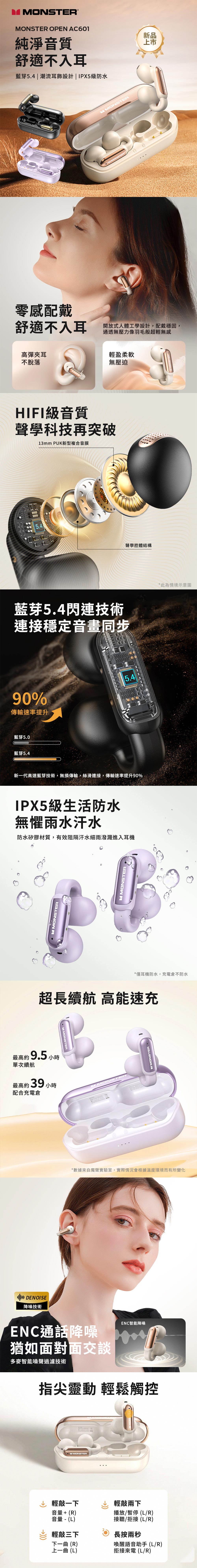 【Monster魔聲】Open Ear AC601 OWS開放式 耳夾無線藍牙耳機-貝殼白