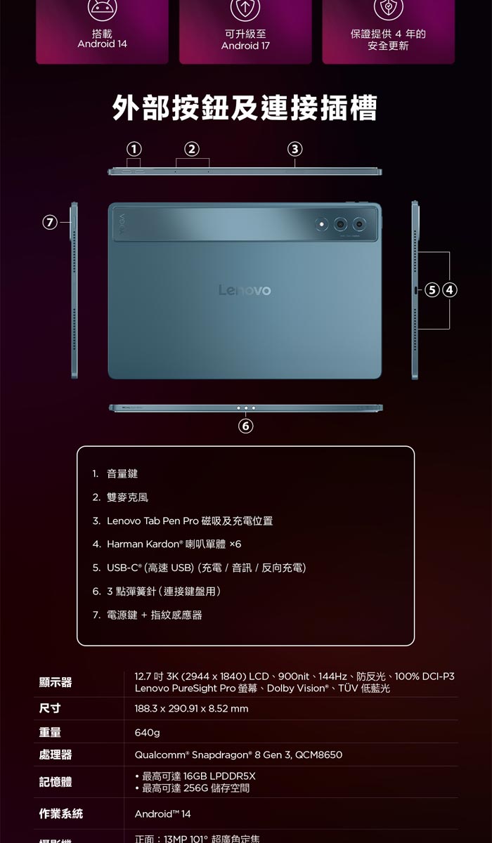 Lenovo 聯想 Yoga Tab Plus ZAEG0170TW S8/16G/256G/12吋 平版電腦