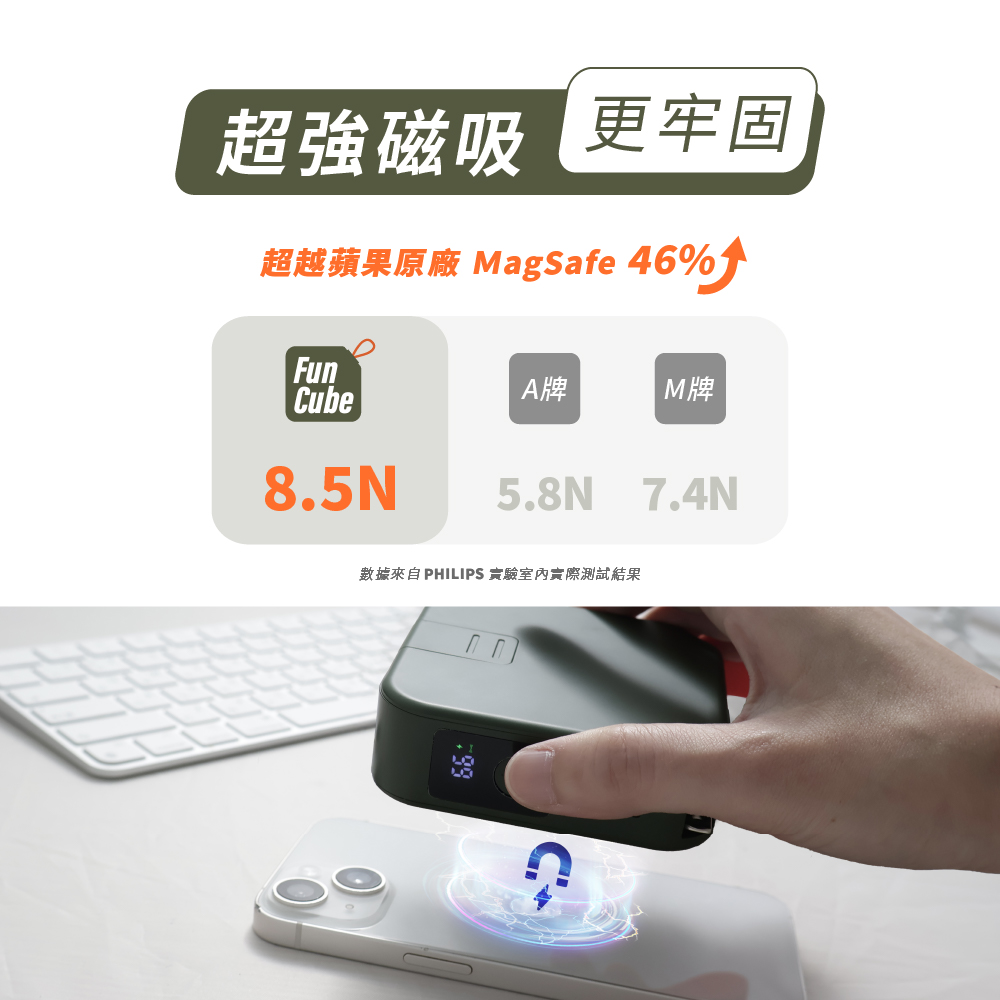 PHILIPS飛利浦 FunCube2.0 多合一磁吸行動電源 Type-C (DLP4348C)-黑/白/綠/粉