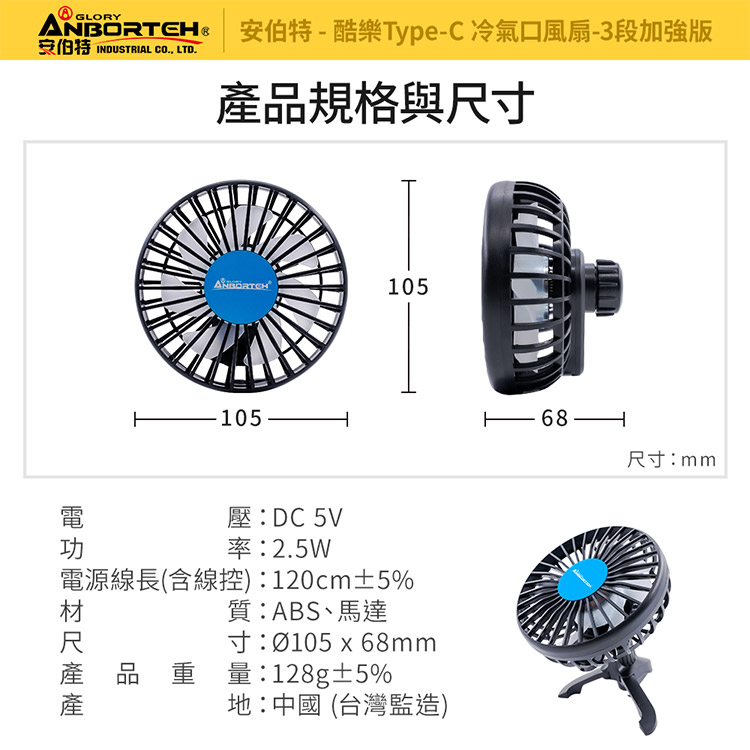 【安伯特】酷樂Type-C 冷氣口風扇