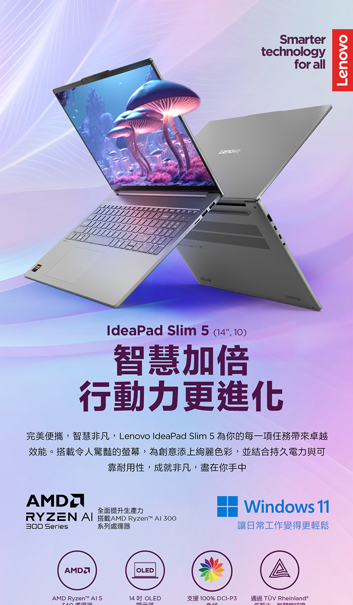 《Lenovo 聯想》IdeaPad Slim 5 83HX004ATW(14吋WUXGA/Ryzen AI 7 350/32G/512G+512G/特仕版)