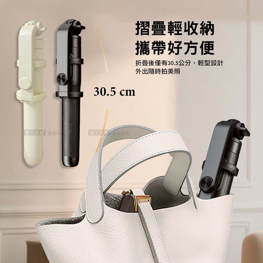 CITY BOSS 藍芽磁吸式+三角架自拍桿-可摺疊桌面三腳架 -白色