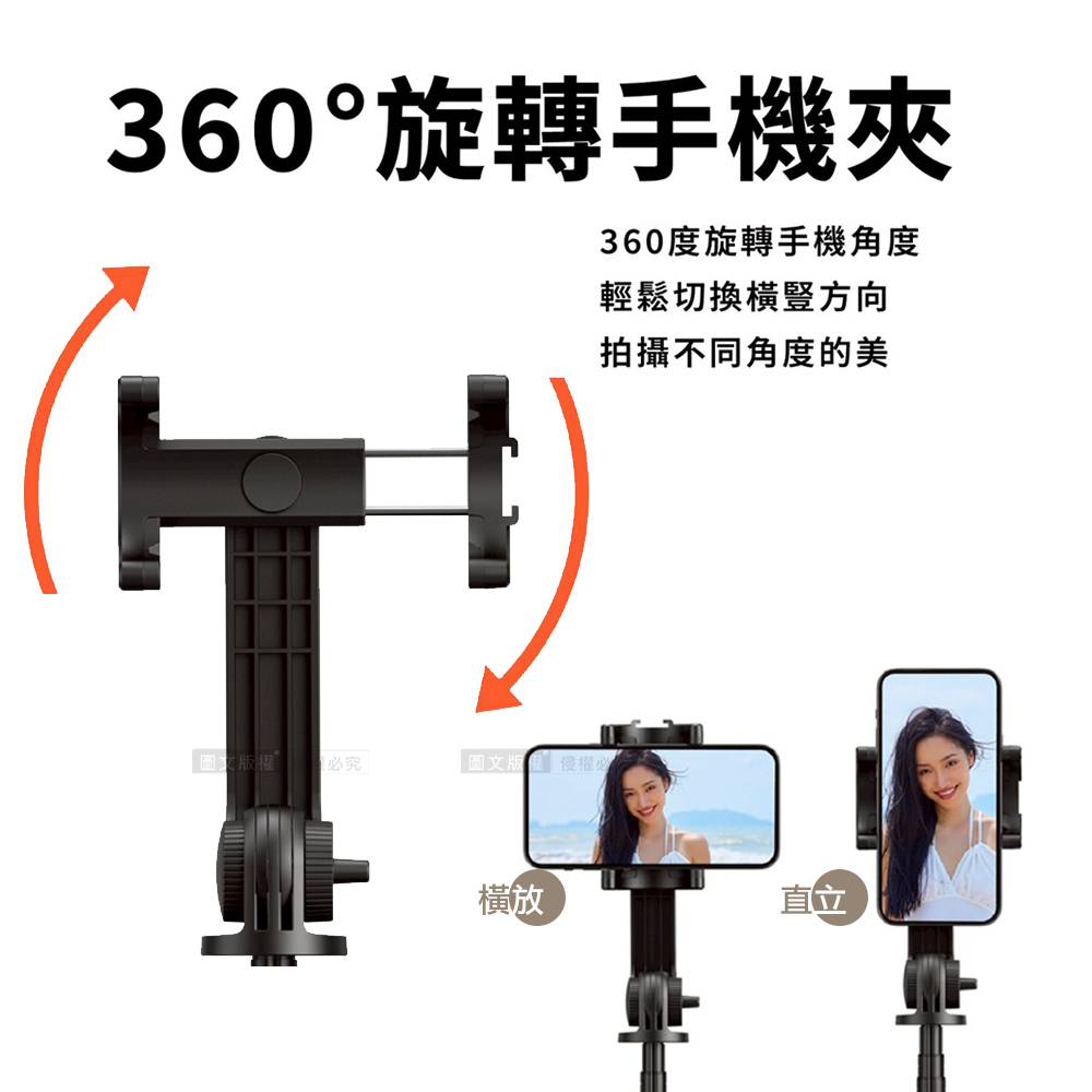 SANSUI山水 輕旅拍360 SS-S886 自拍棒 磁吸 藍芽遙控 360度 5段伸縮 三腳架 (多色)