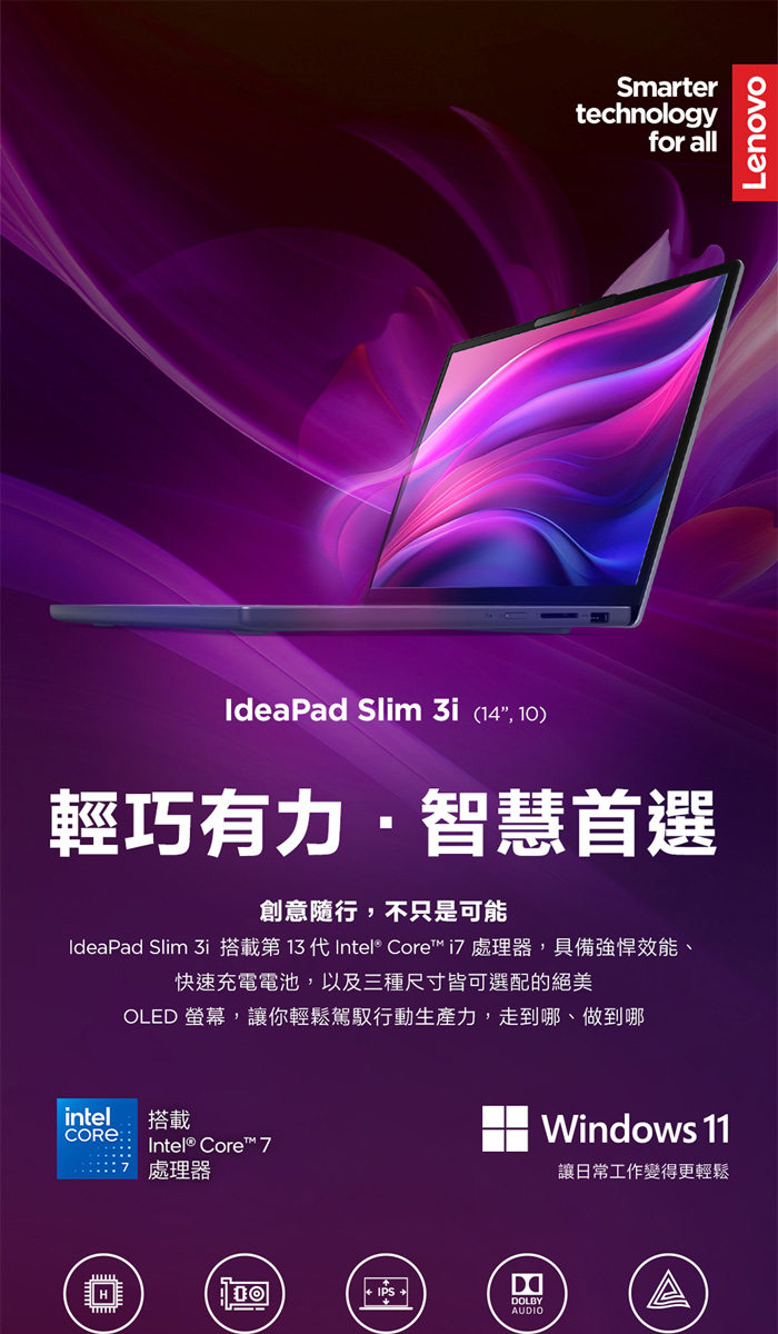 Lenovo IdeaPad Slim 3 83K100PQTW 15.3吋效能筆電 i5-13420H/8G/512G PCIe SSD/Win11