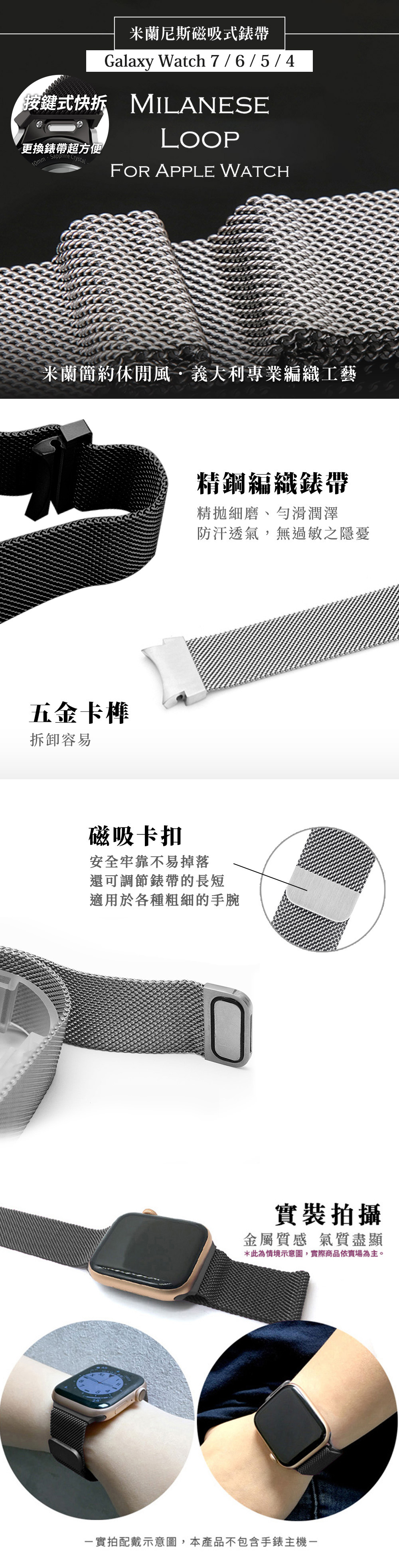 【Timo】SAMSUNG三星 Galaxy Watch 7 /6 /5 /4 通用款 按鍵式 米蘭尼斯磁吸式錶帶-黑色