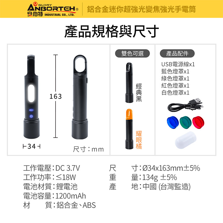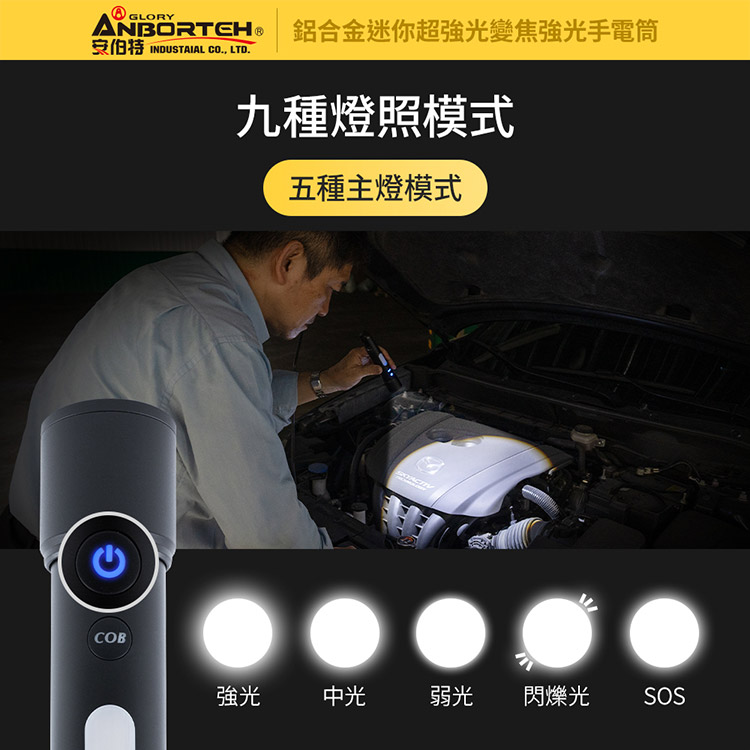 【安伯特】鋁合金迷你超強光變焦手電筒