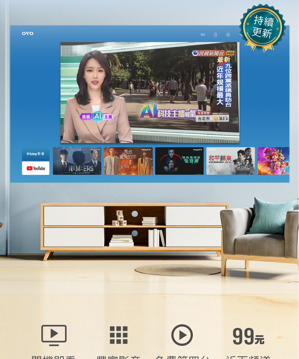 OVO 行動百吋劇院智慧投影機 U9*送四季線上+影視30天【智慧家庭】