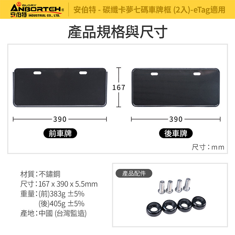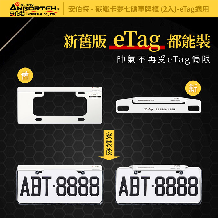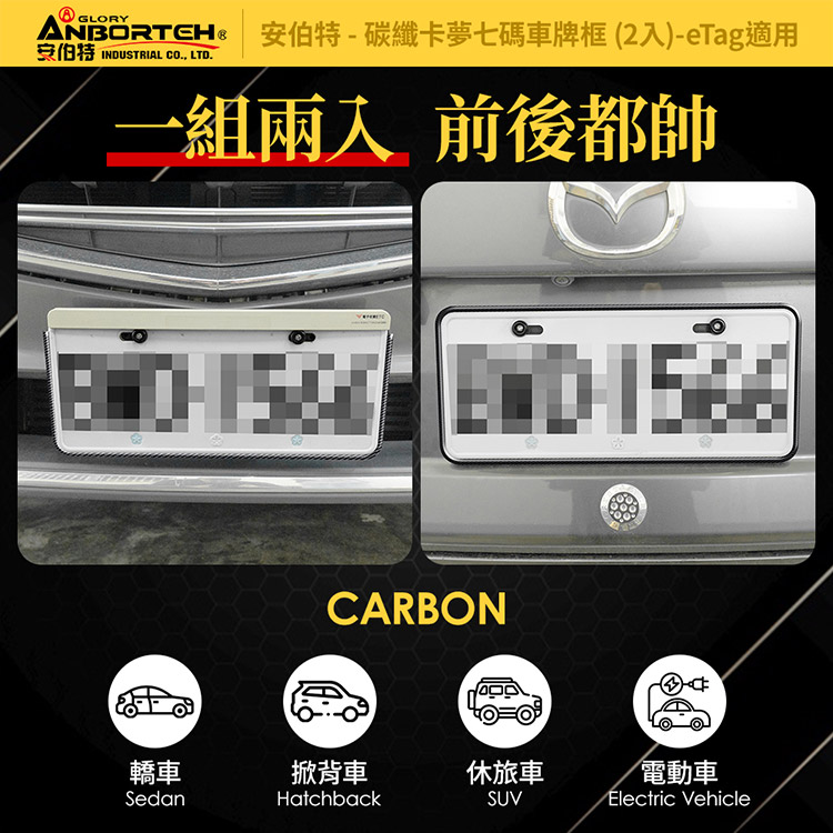 【安伯特】碳纖卡夢七碼車牌框(2入)-eTag適用