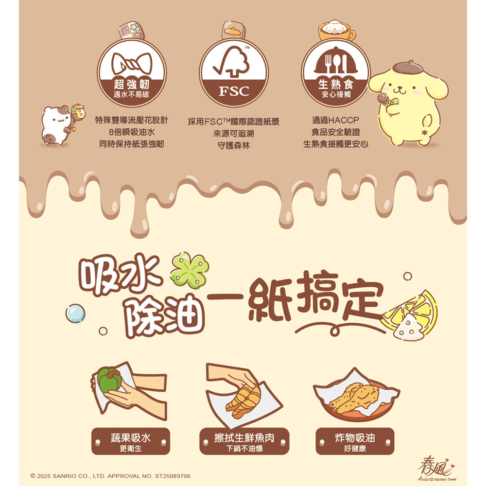 【春風】 布丁狗抽取式廚房紙巾120抽x3包/2串(送好禮_贈品隨機出貨)