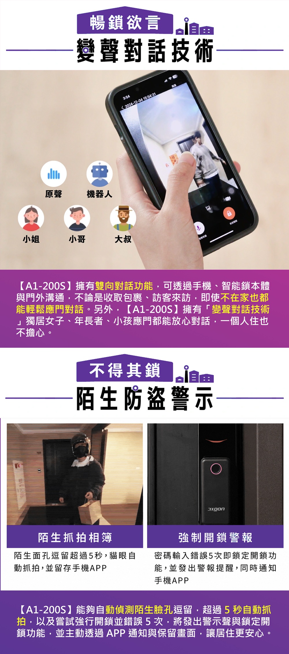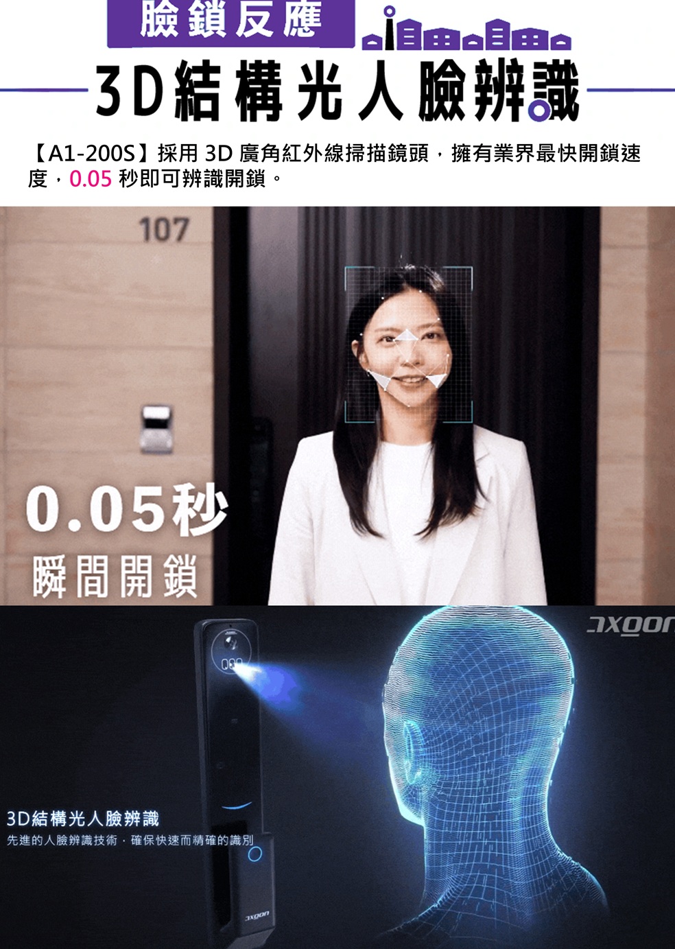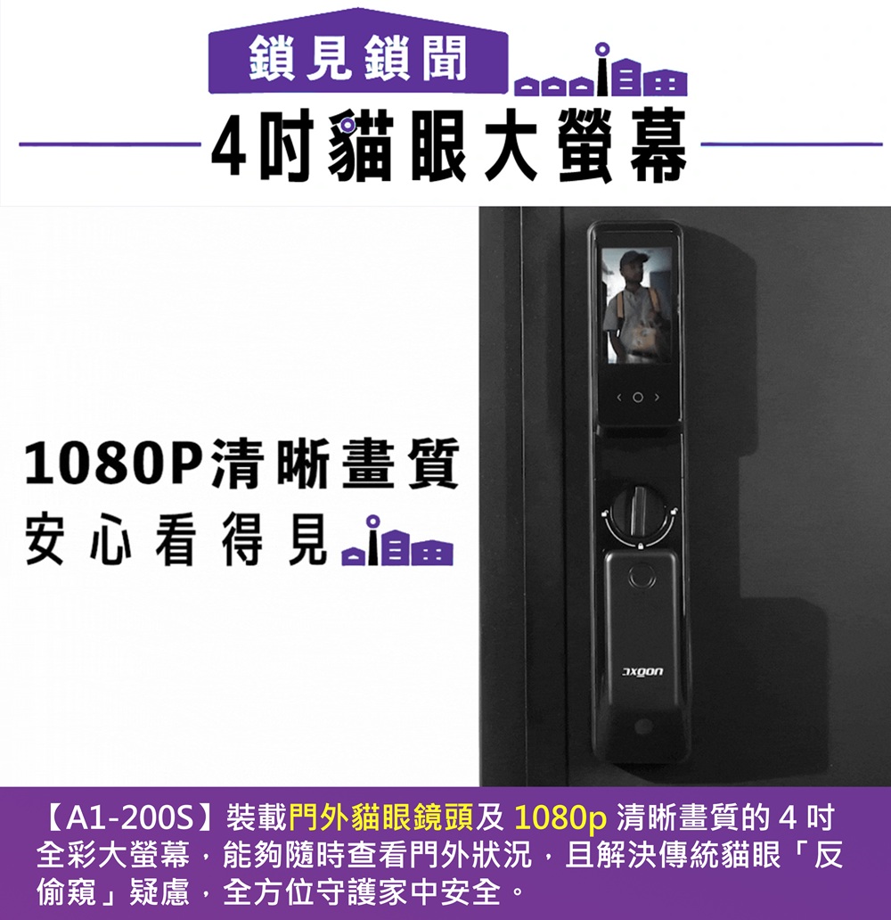 【AXGON】A1-200S 無鎖畏 9合1推拉式智能電子鎖 (掌靜脈│人臉│指紋│卡片│密碼│APP/含安裝)