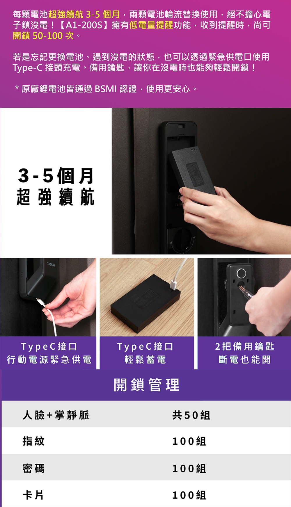 FJ多功能指紋感應防盜電子鎖CK12(支援Type-C應急供電)