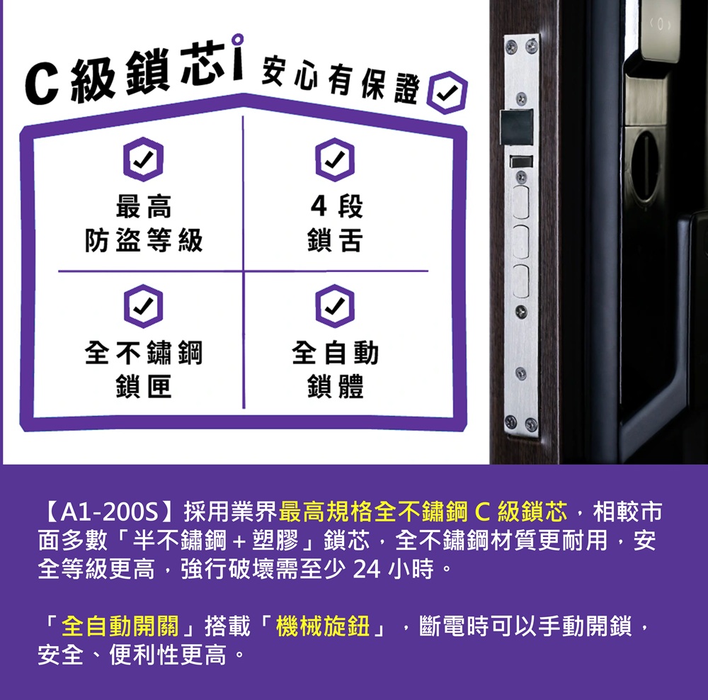 含安裝 SIEMENS 德國西門子 C321 四合一電子鎖 ( 指紋 卡片 密碼 鑰匙
