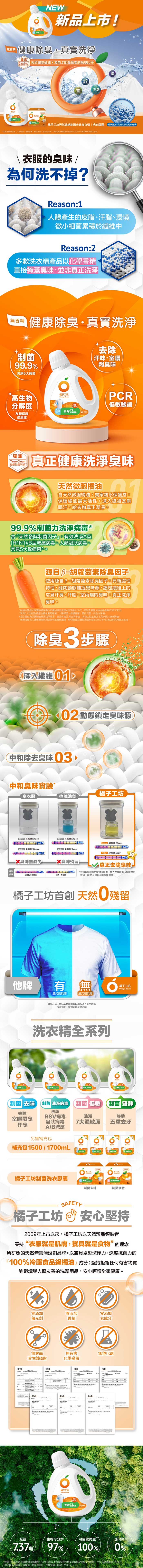 橘子工坊天然無香精制菌洗衣精補充包-洗淨病毒1500ML*6包_廠商直送