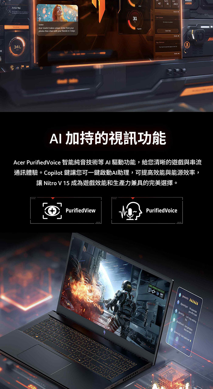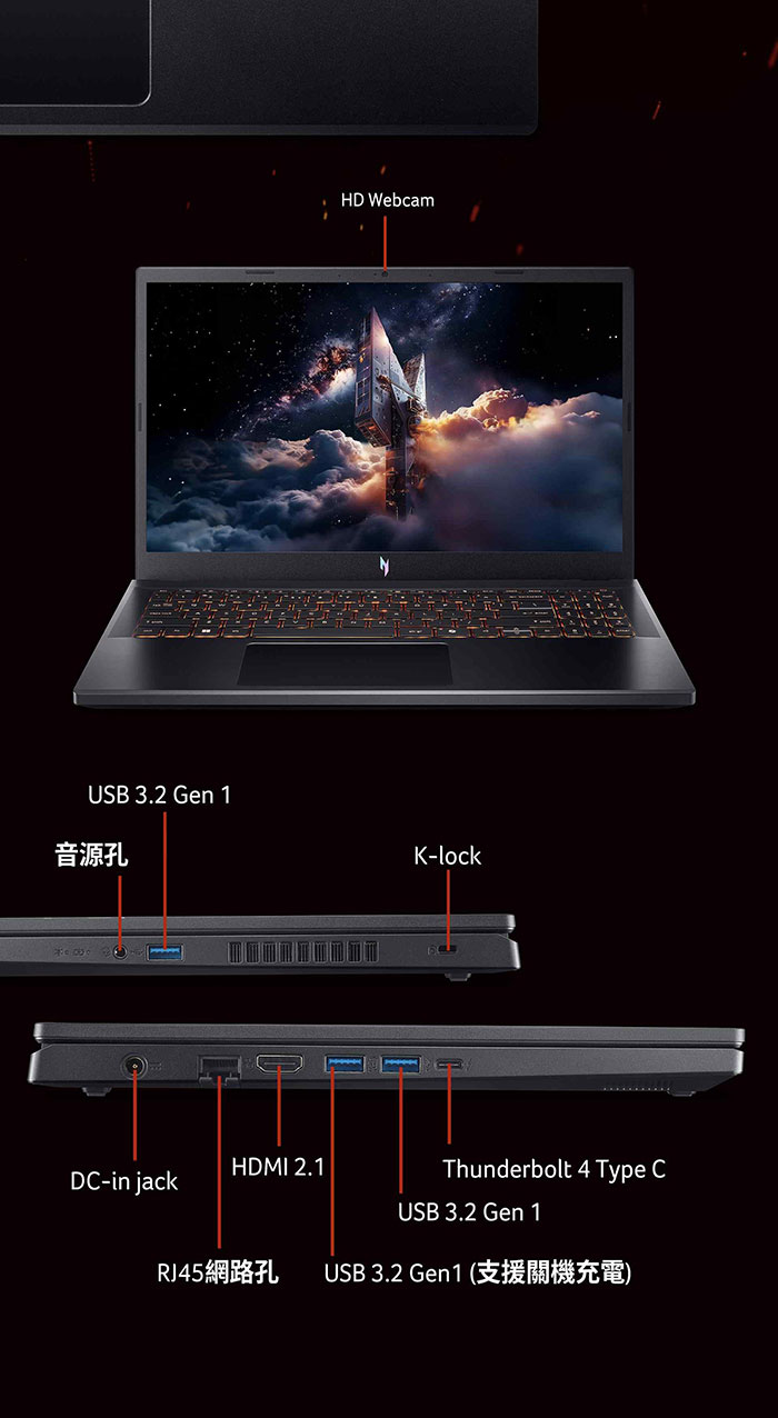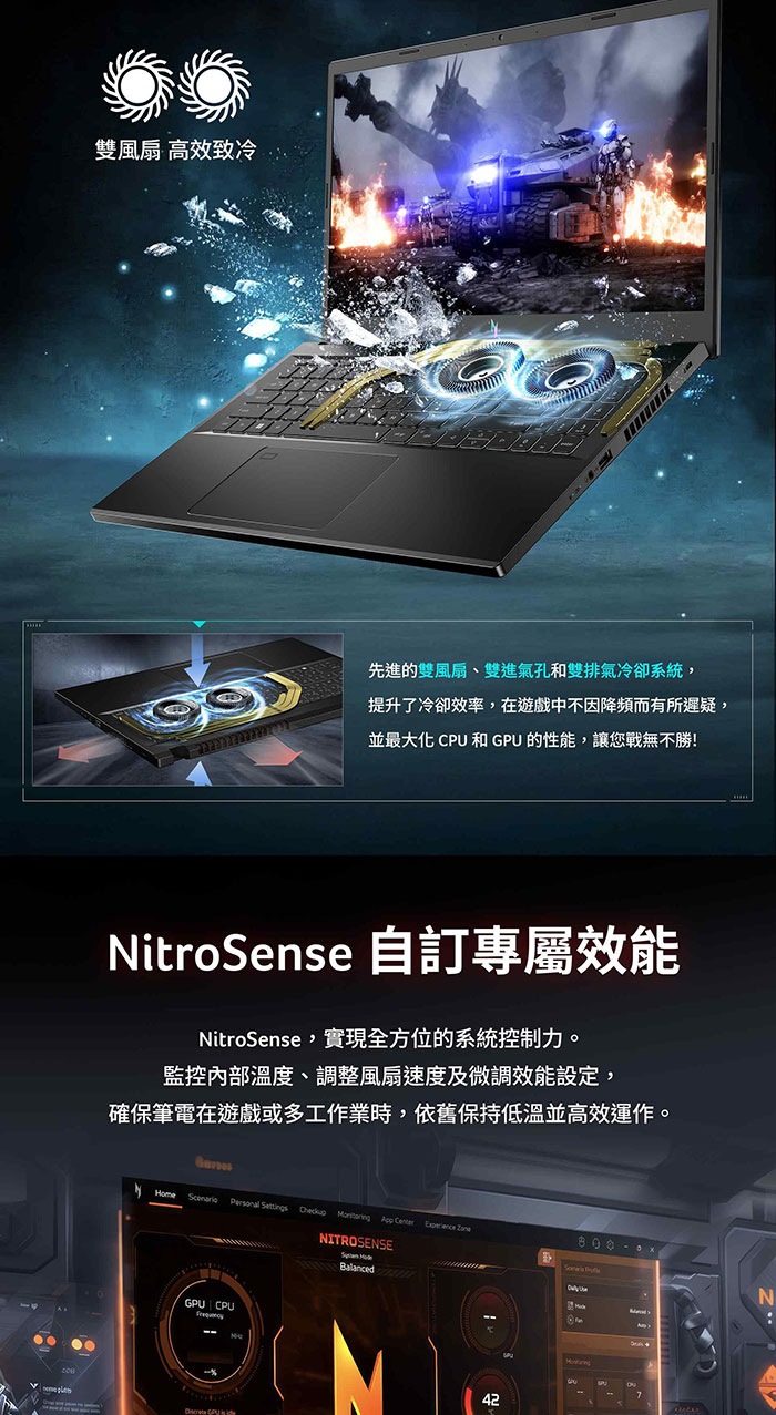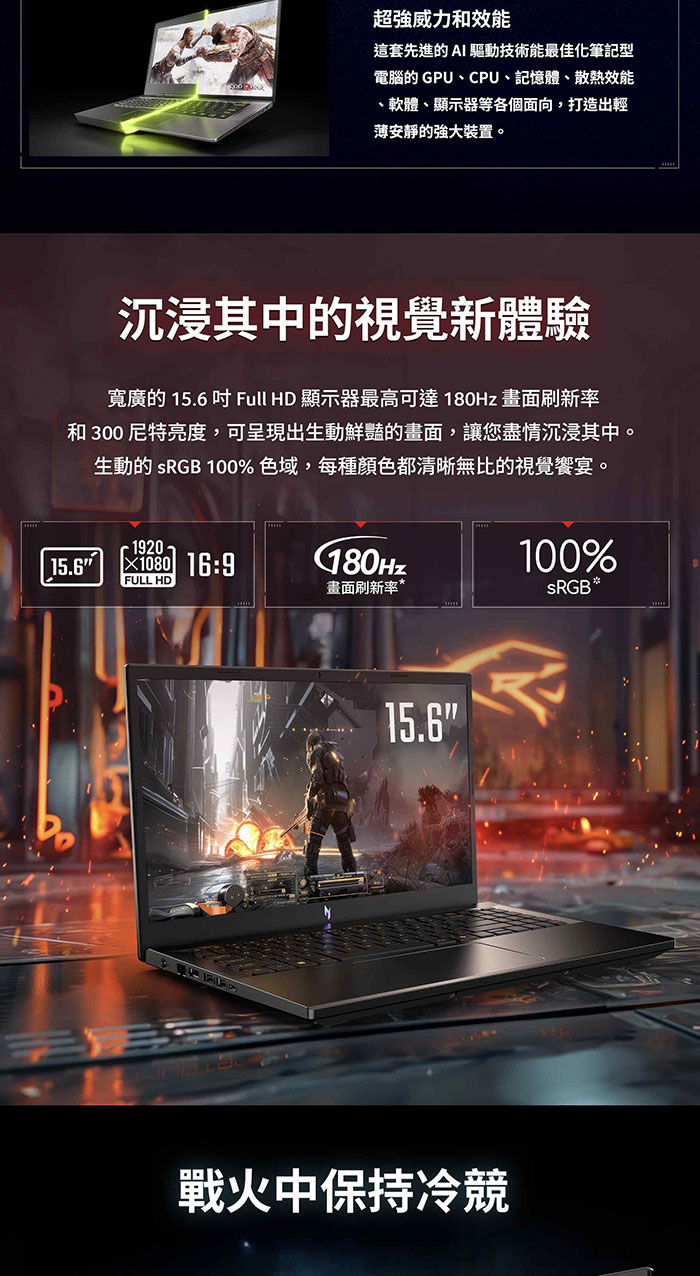 Acer Nitro|AN16S-61-R0VD 16吋Copilot+ PC纖薄AMD電競AI筆電(RTX5070/R7-350/16G/512G/W11)