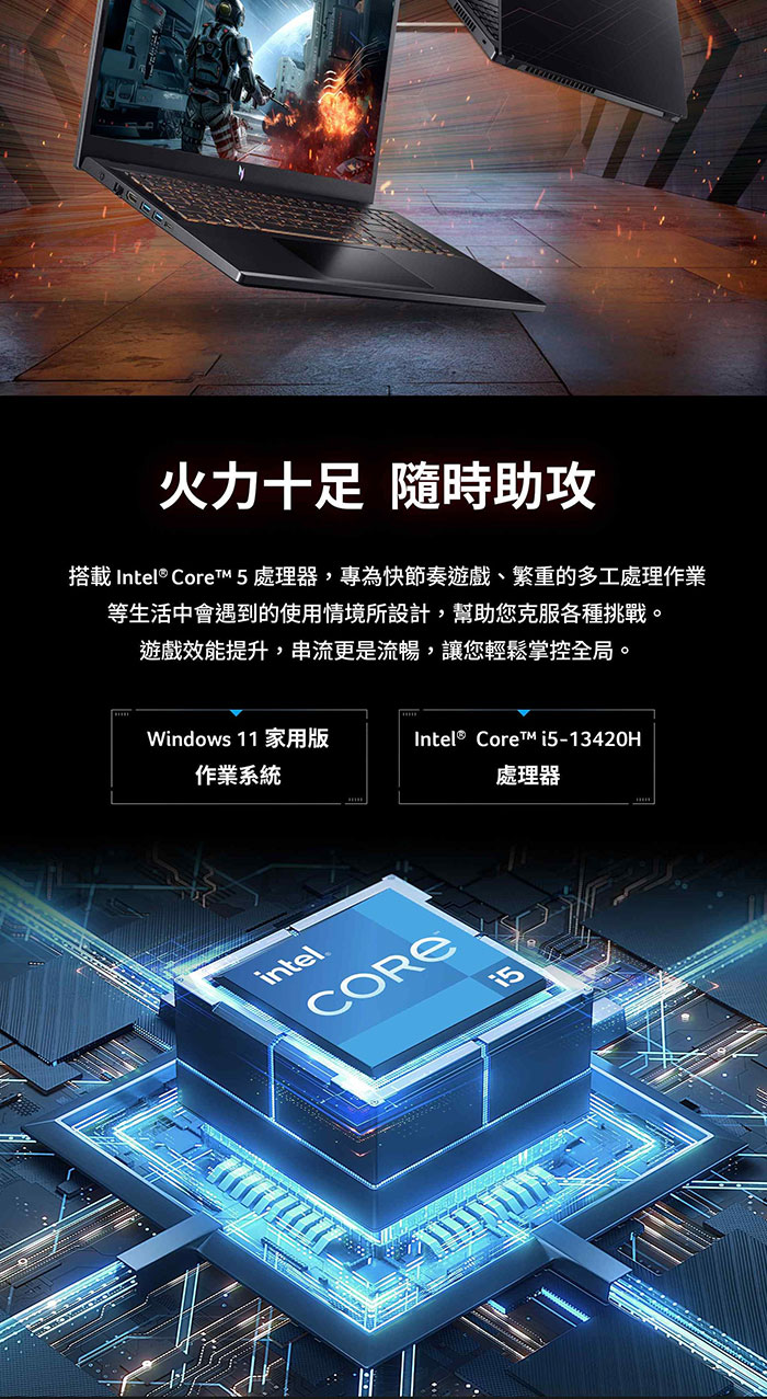 Acer Nitro | NL16-71G-56ZT 16吋電競筆電(RTX4050/i5-13420H/8+8G/512G/WIN11)
