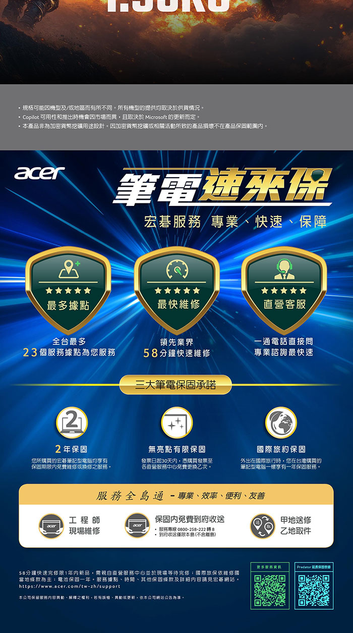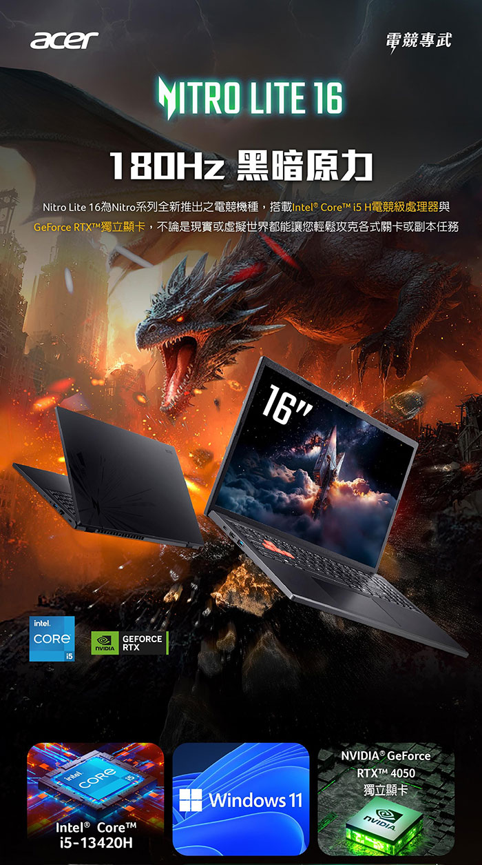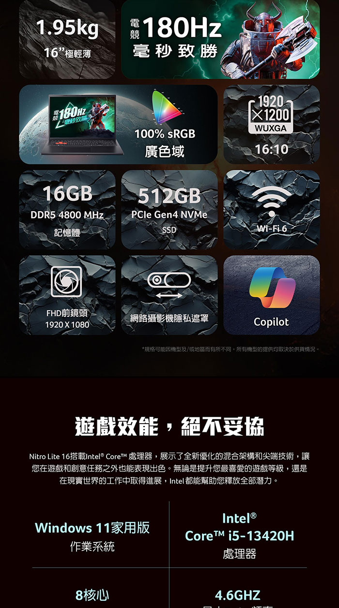 Acer Nitro|AN16S-61-R0VD 16吋Copilot+ PC纖薄AMD電競AI筆電(RTX5070/R7-350/16G/512G/W11)