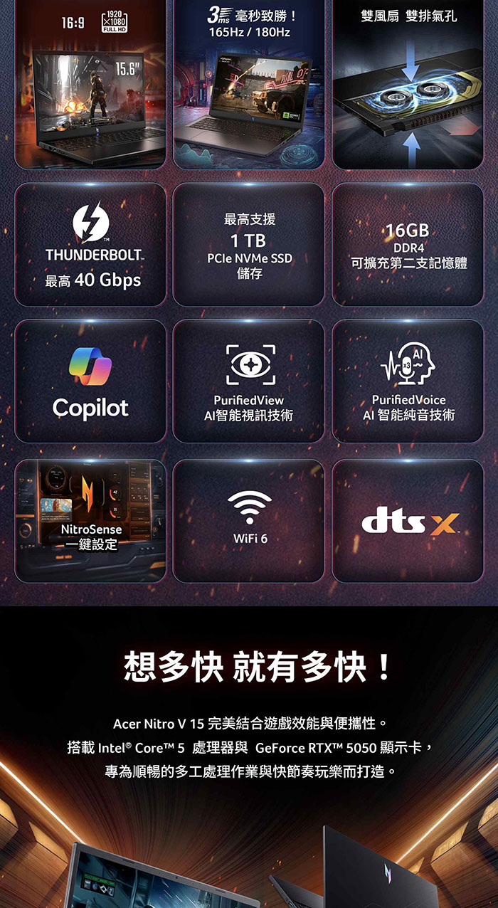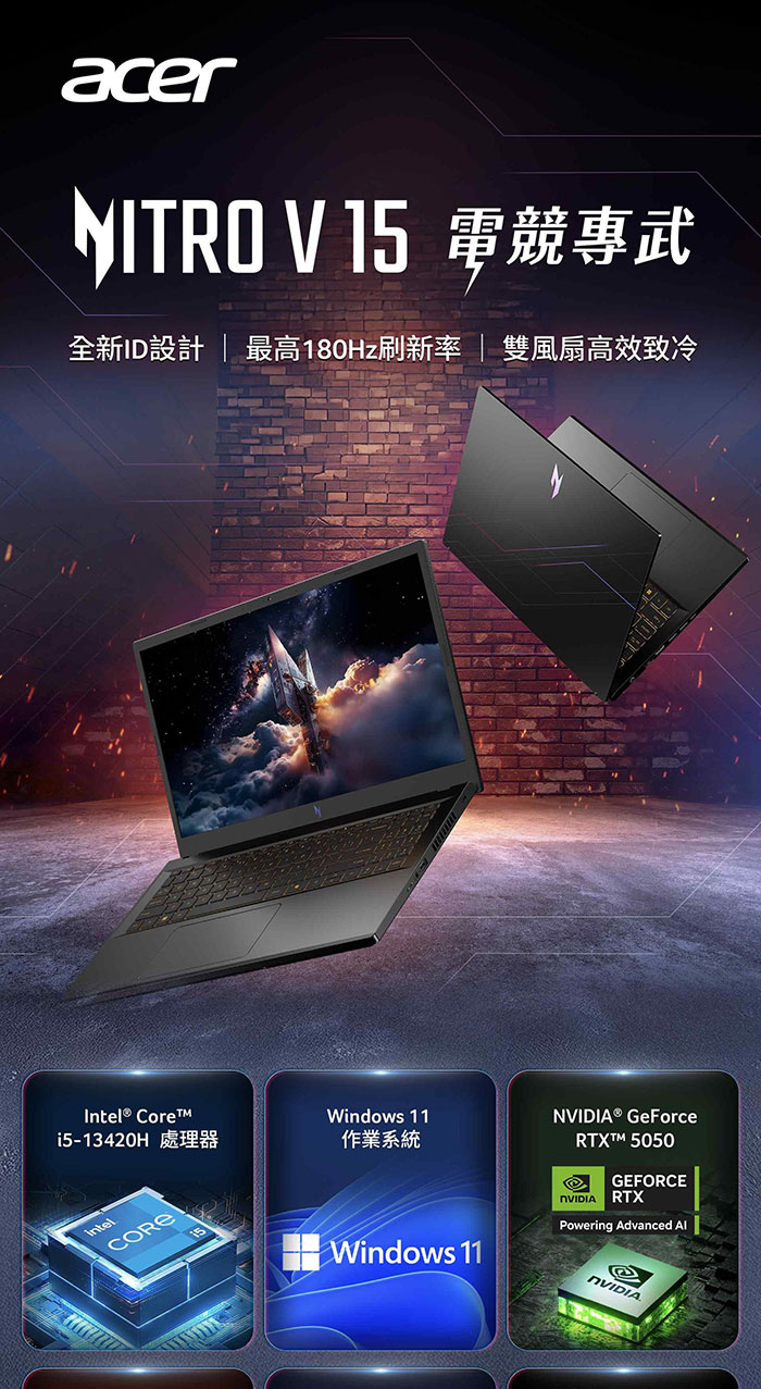 Acer 宏碁 Nitro V ANV15-52-576H 15.6吋電競特仕筆電(C5-210H/32G+32G/2TB SSD/RTX 5060/Win11H)