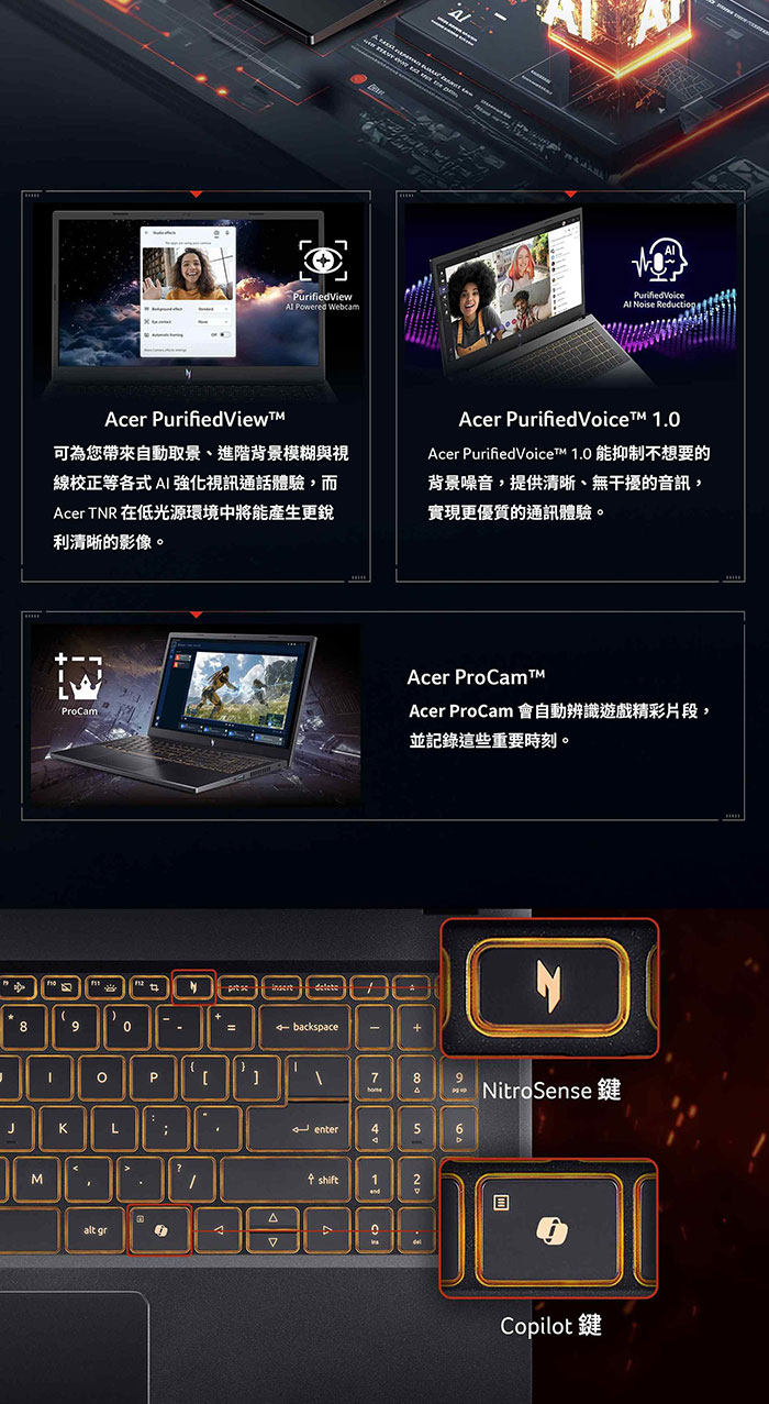 Acer Nitro|AN16S-61-R0VD 16吋Copilot+ PC纖薄AMD電競AI筆電(RTX5070/R7-350/16G/512G/W11)