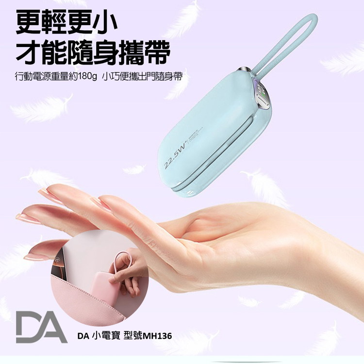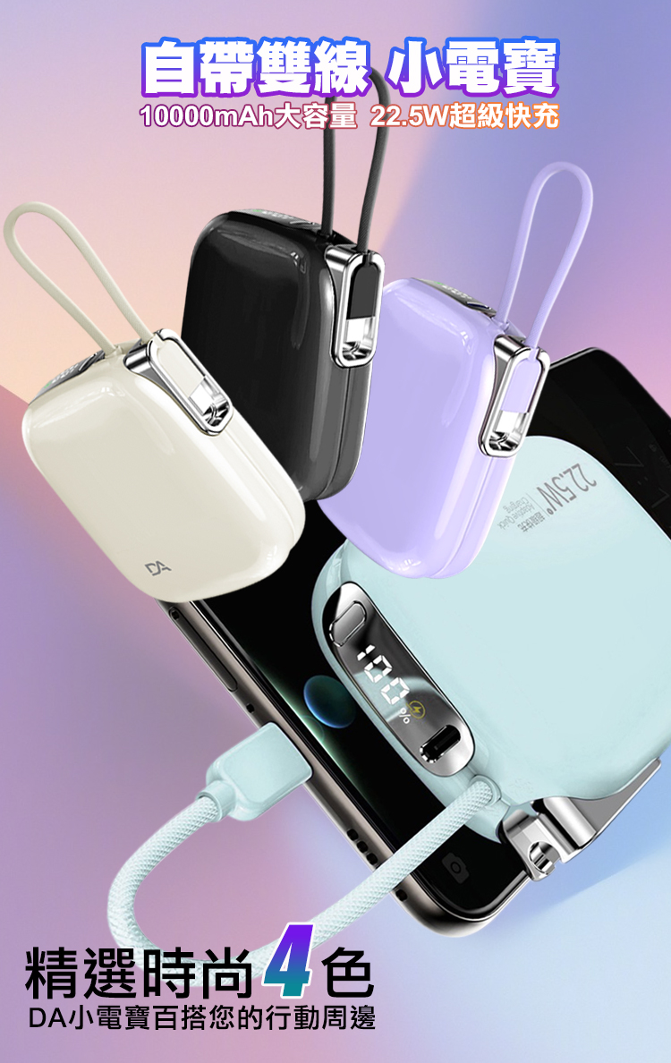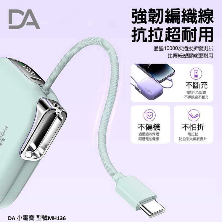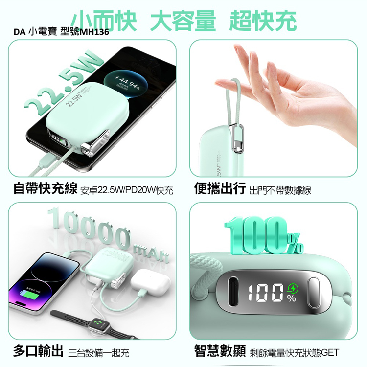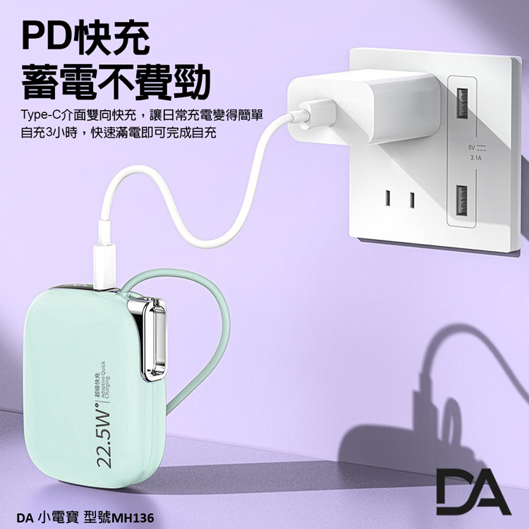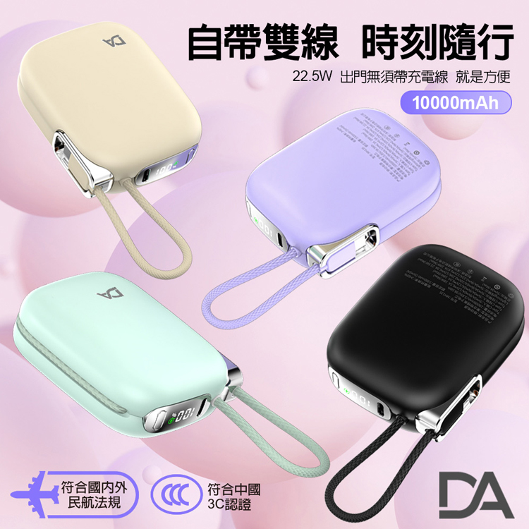 DA 22.5W自帶雙線迷你小電寶 10000mAh快充行動電源-綠