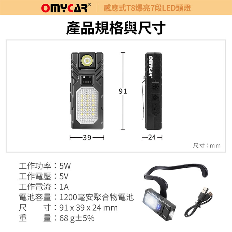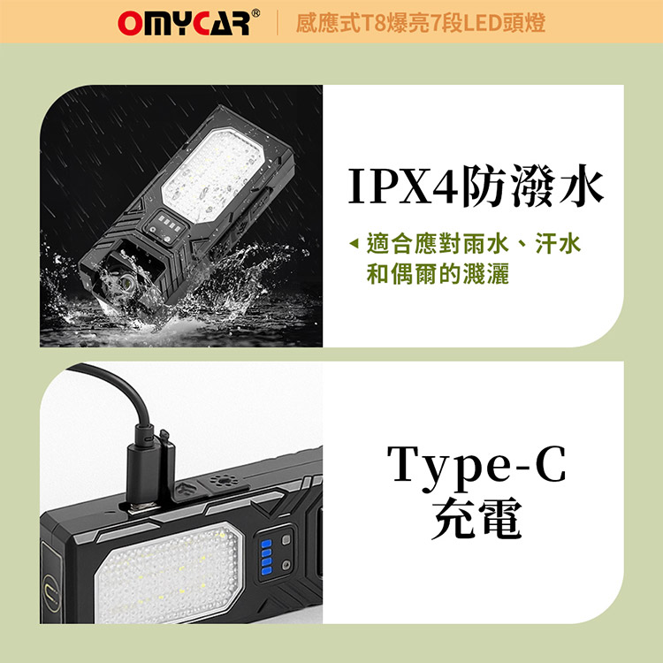 【OMyCar】感應式T8爆亮7段LED頭燈