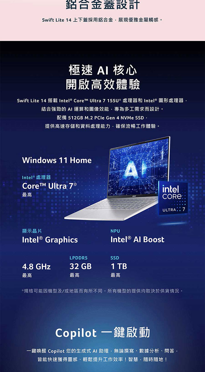 ACER Swift Edge14吋AI效能筆電(Ultra 7 355/32G/1TB/OLED/SFE14-I51-75LQ)