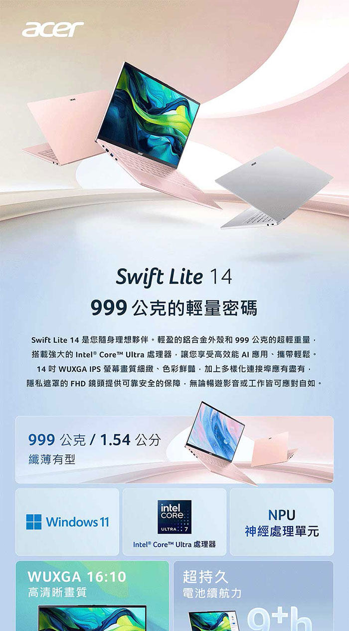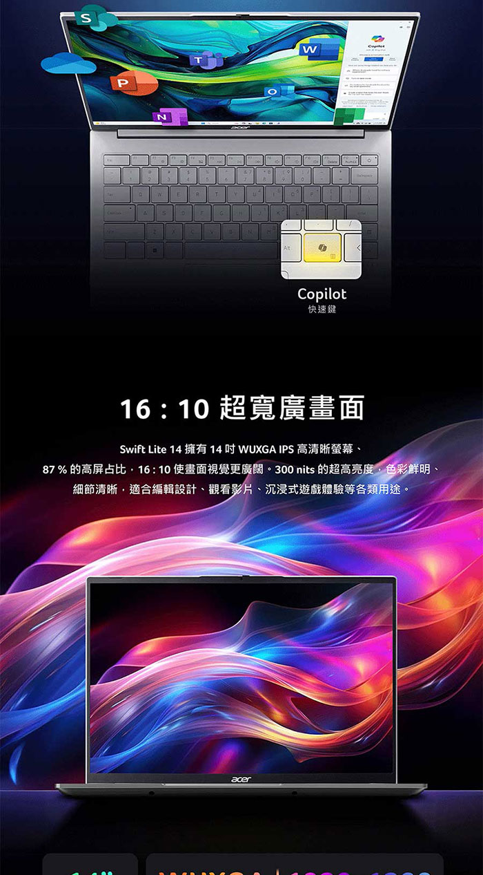Acer Swift Lite|SFL16-41M-R10R 16吋輕薄AI筆電(R5-240/16G/512G/WIN11)