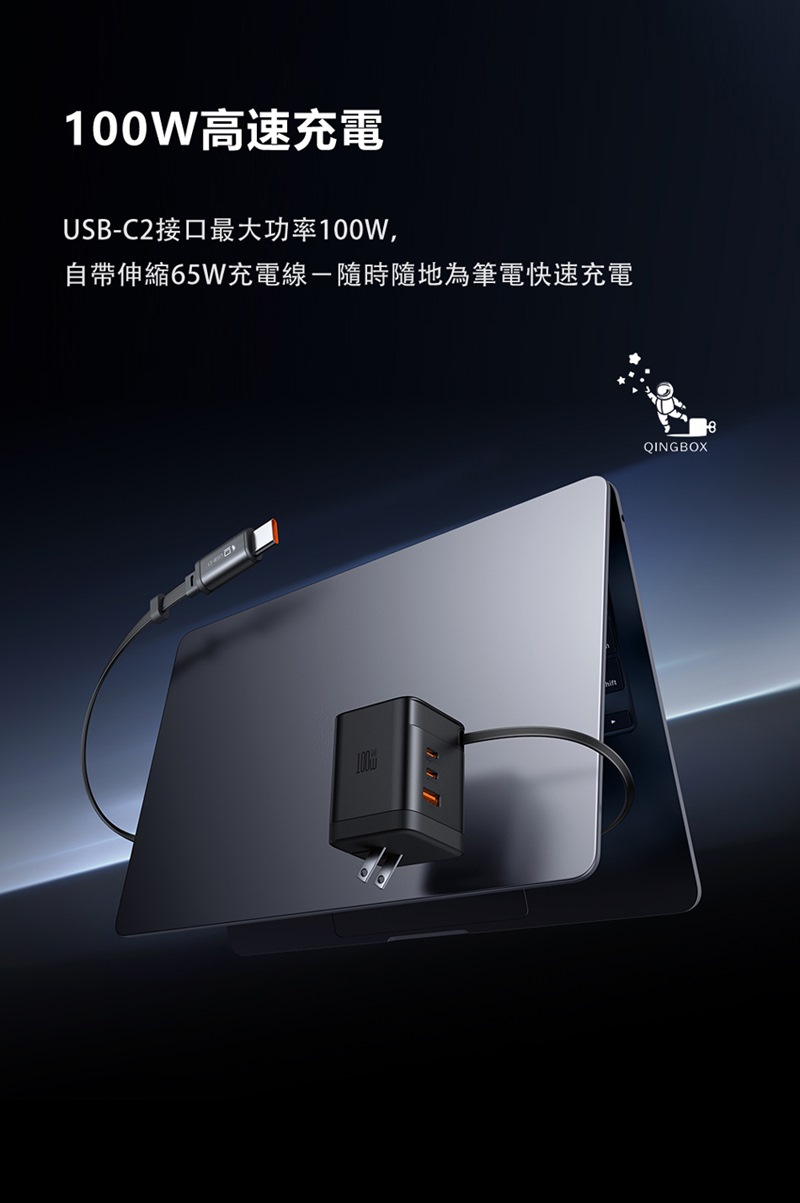輸出USB-C2:5V/3A,9V/3A,12V/3A,15V/3A,20V/5A,100W Max.