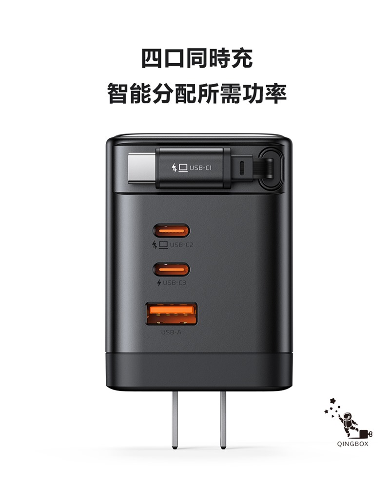 輸出USB-C1自帶線+C2+(USB-C3+USB-A):30W+45W+15W