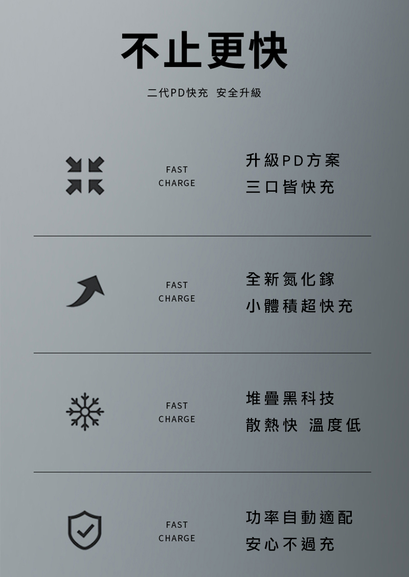 aibo 3開4插 GaN氮化鎵PD65W智慧快充延長線-1.8米