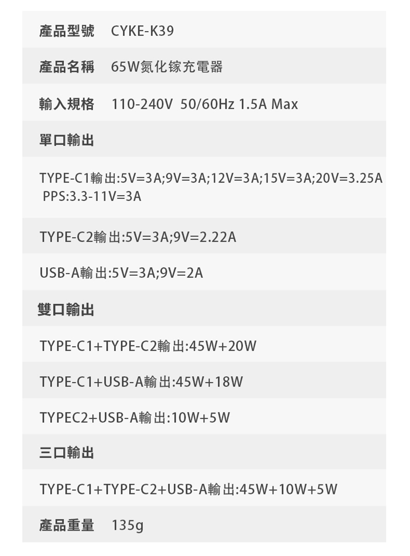 【LaPO】70W 氮化鎵3口極速充電器 Lch70