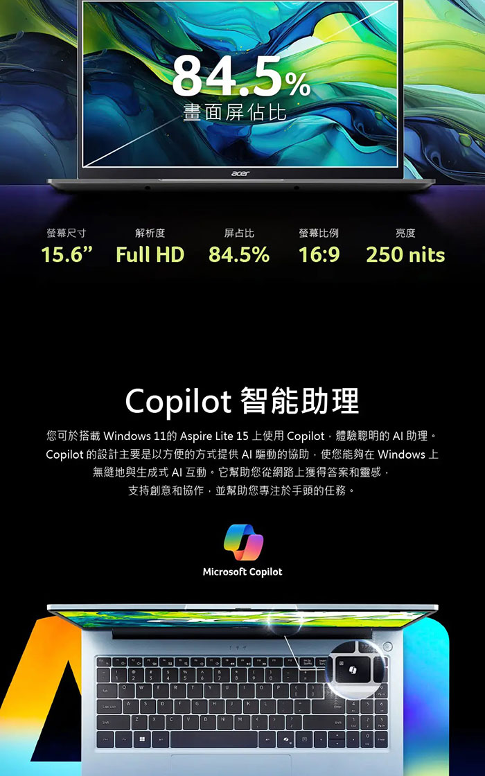 ACER Aspire Lite AL15-54P-576Z 銀 CU5-115U/16G/512G/15.6文書筆電