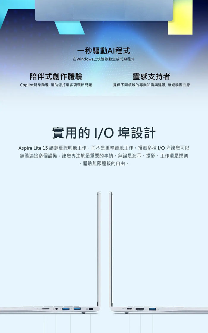 ACER 宏碁 Aspire Lite AL15-51P-50GN 銀(C5-120U/16G/512G/Win11/15.3吋)效能筆電