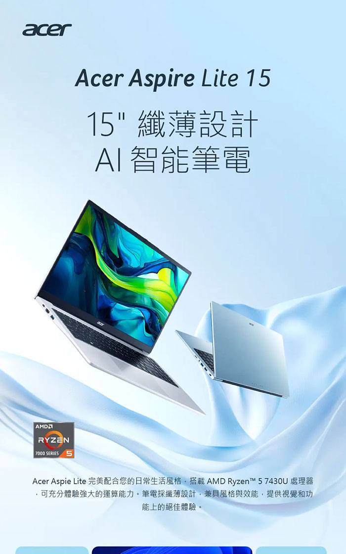ACER 宏碁 Aspire Lite AL15-64P-R9RS 銀(R5-7640HS/16G/512G/Win11/15.3吋)效能筆電