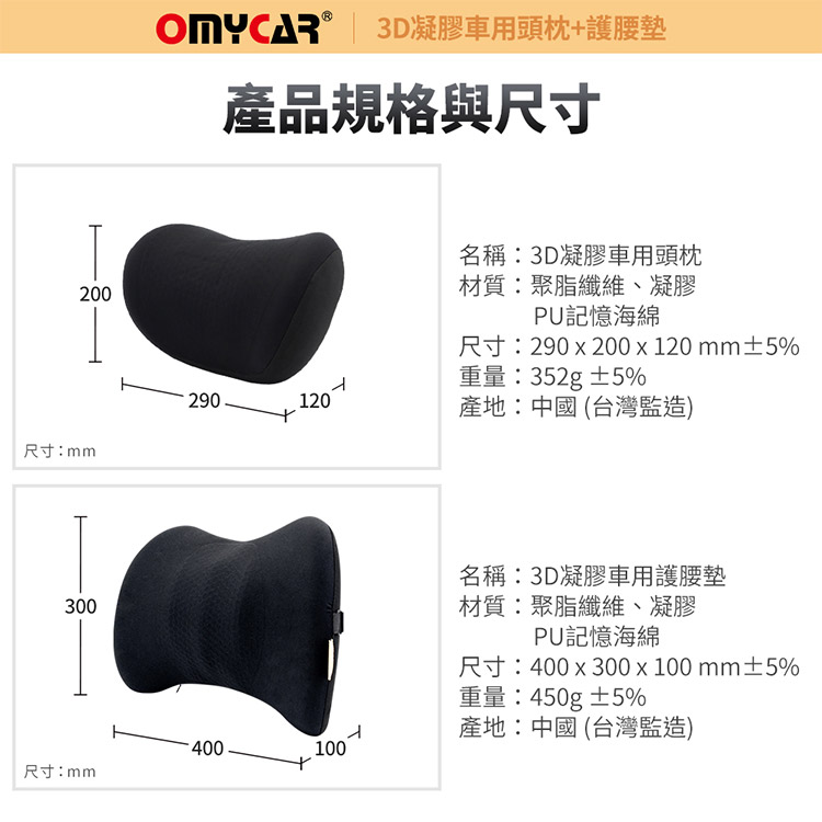 【OMyCar】3D凝膠車用頭枕+護腰墊