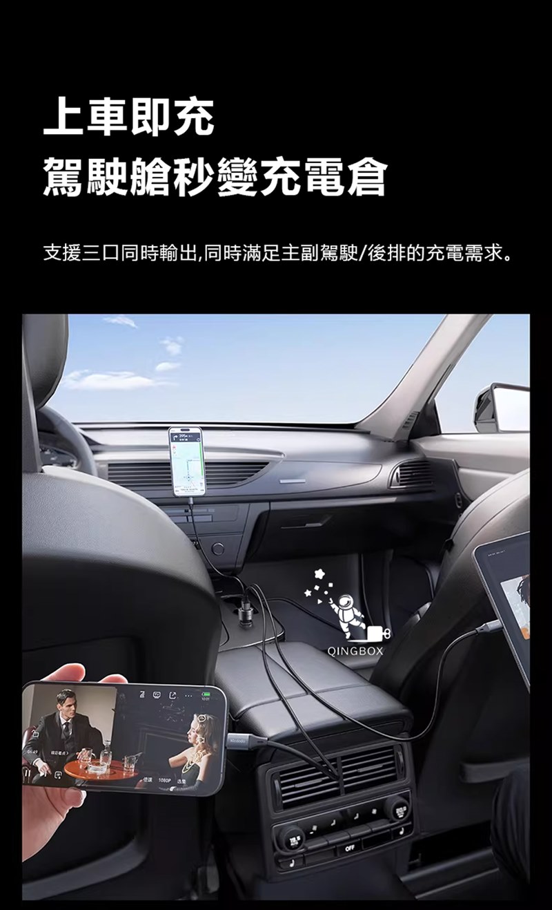 同時滿足主副駕駛/後排的充電需求
