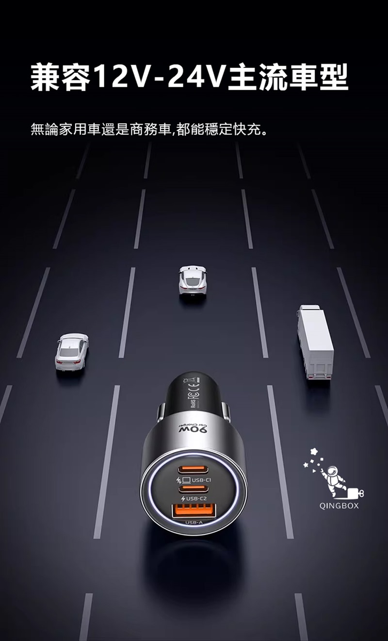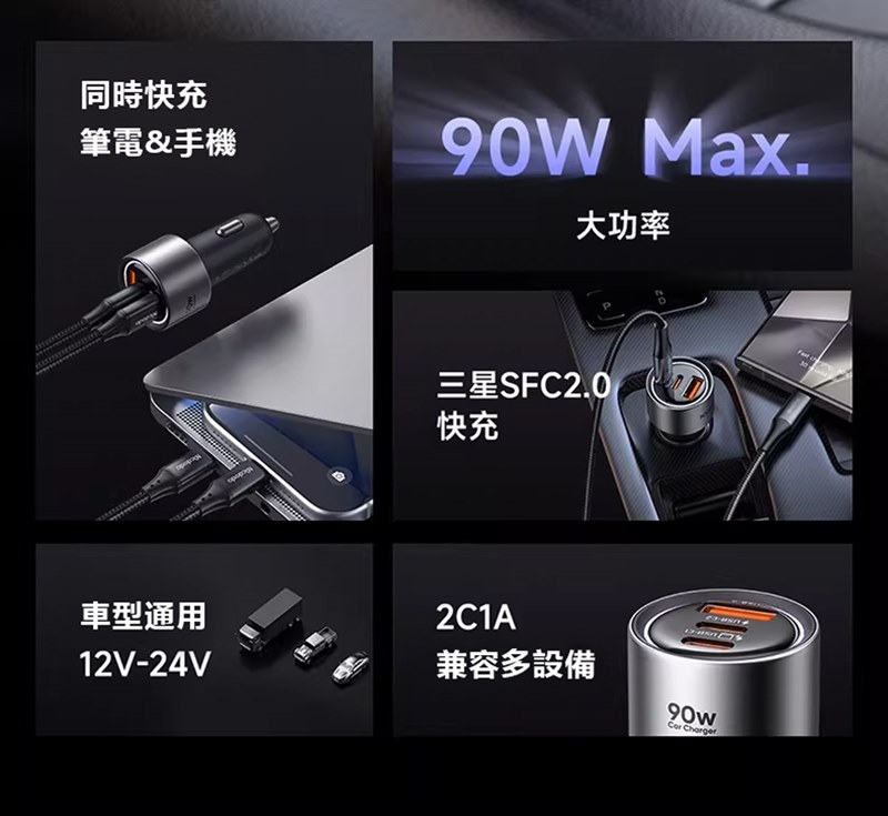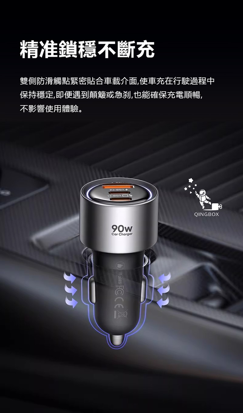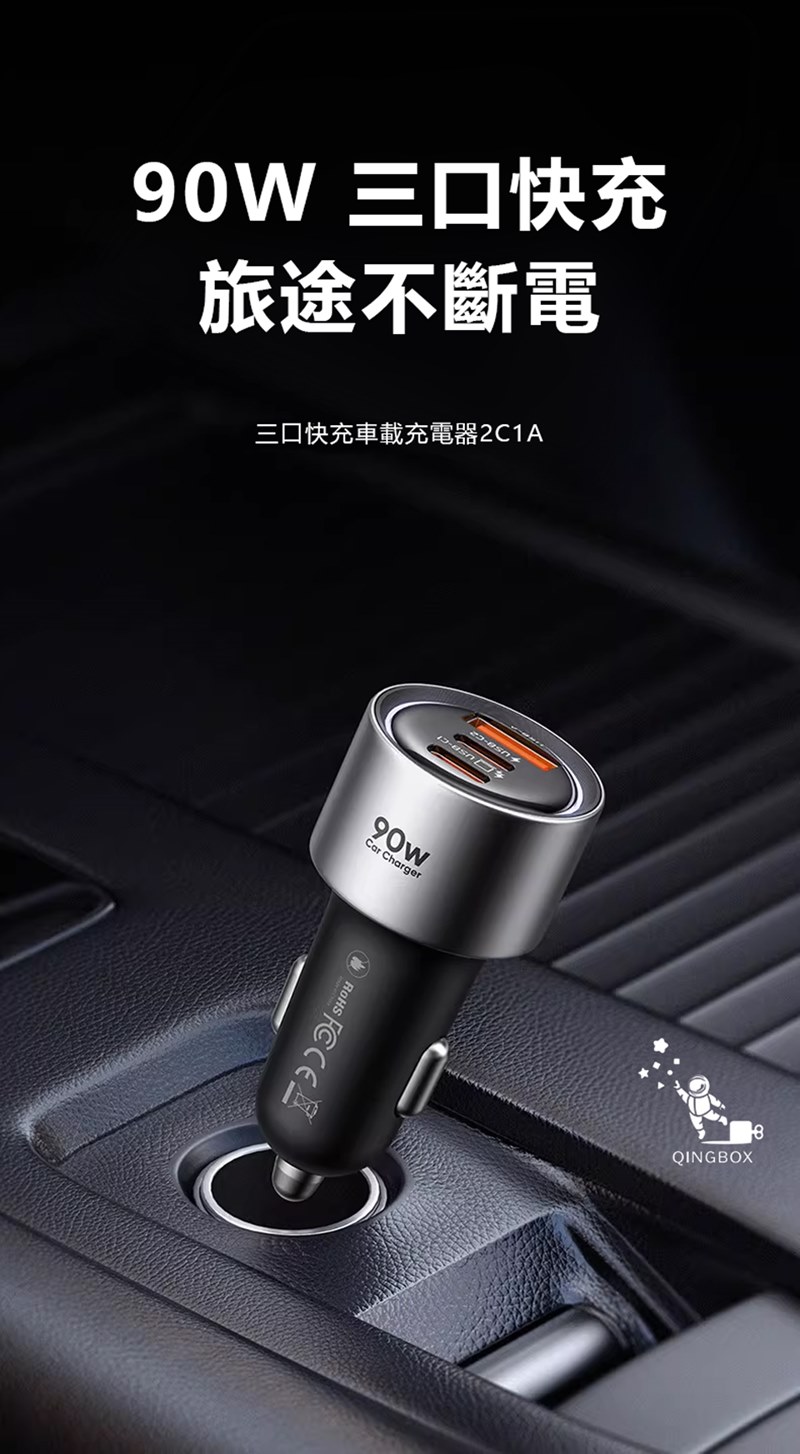 產品名稱:90W三口快充車載充電器