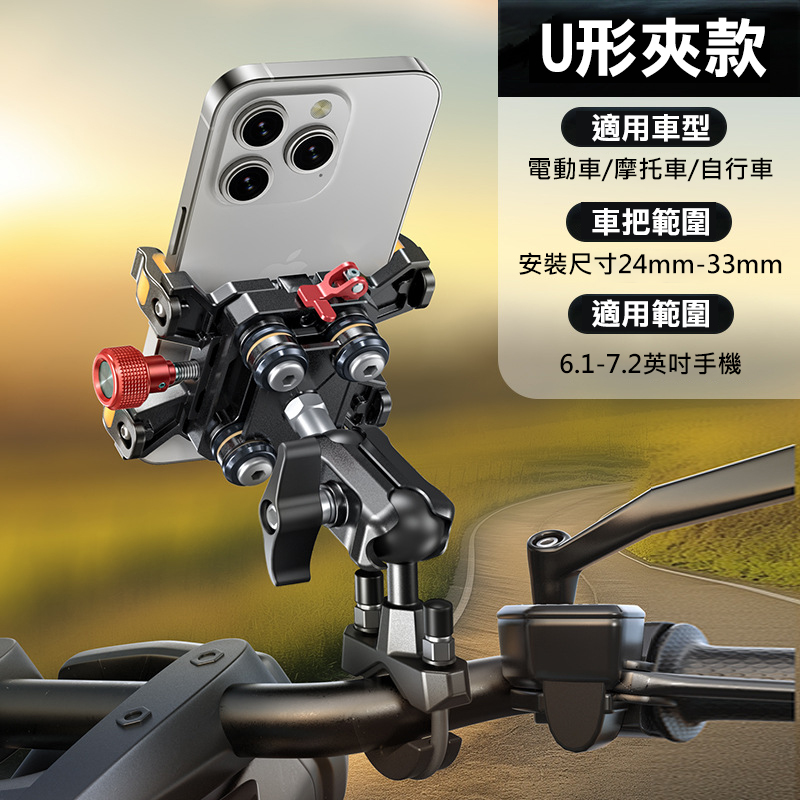 迷你機車減震快扣手機支架(U型車把款)