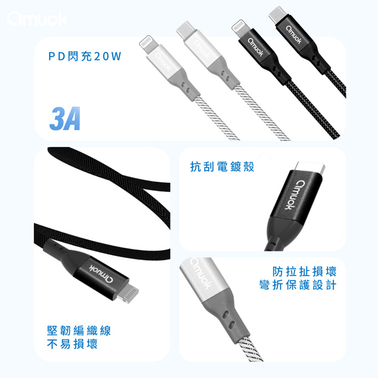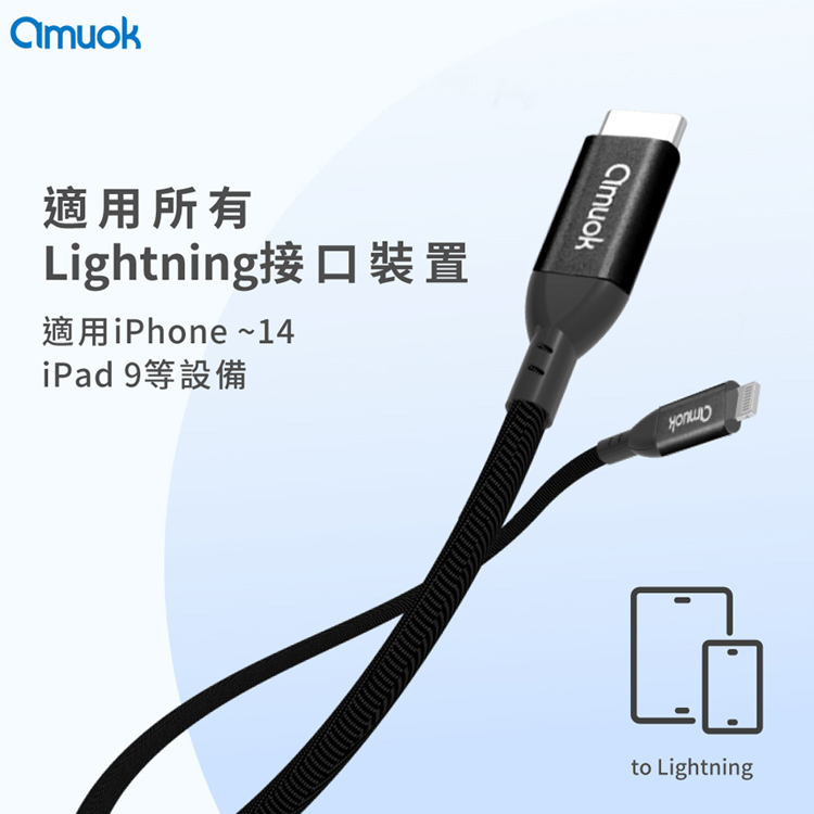 amuok CA-M04 PD快速充電線 Type-C to Lightning-2米-黑