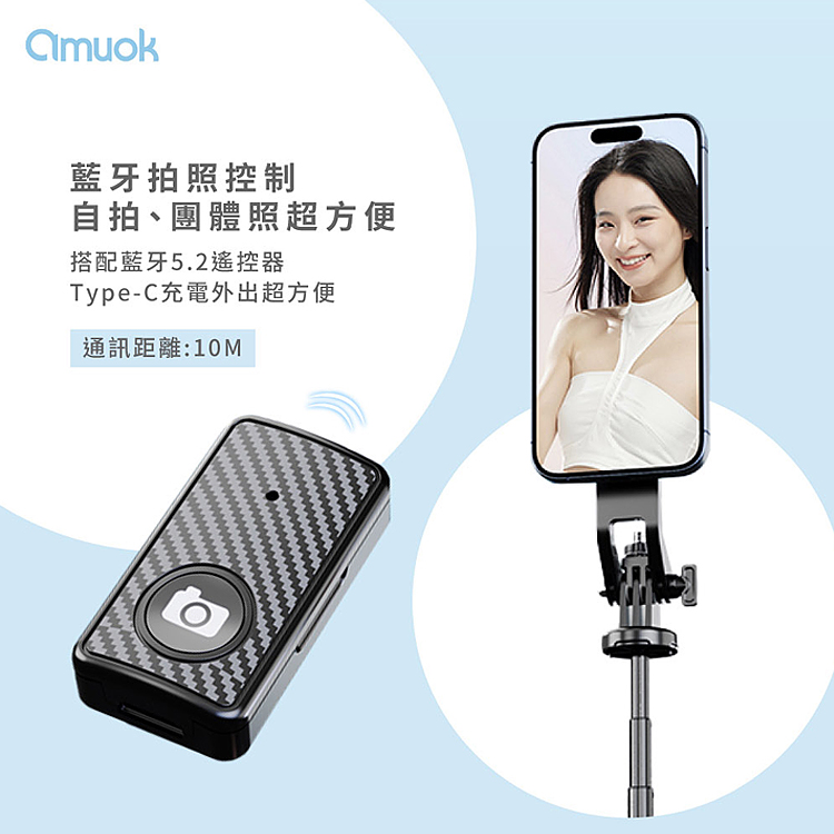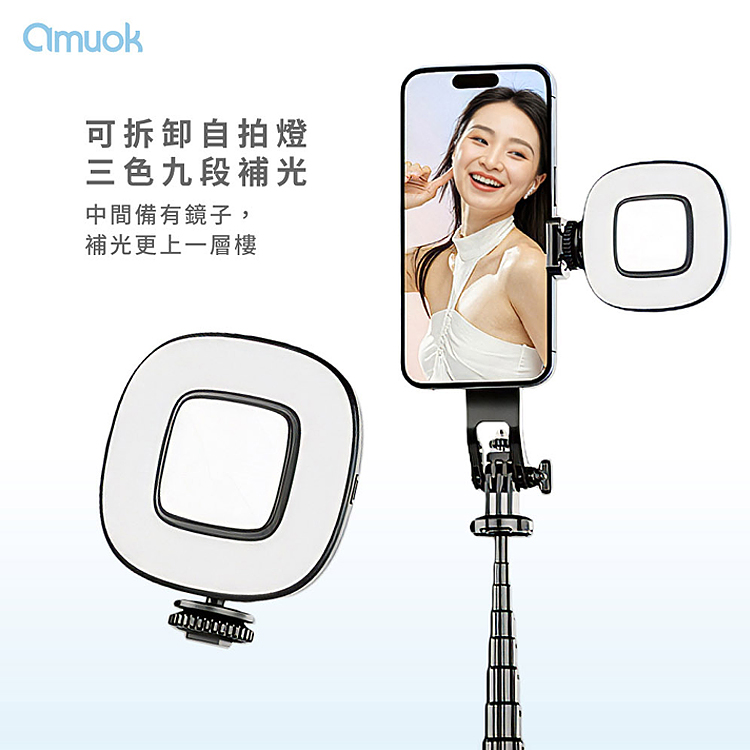 amuok 多合一2.0直播自拍桿 藍牙自拍棒 補光燈自拍棒 遙控器 腳架