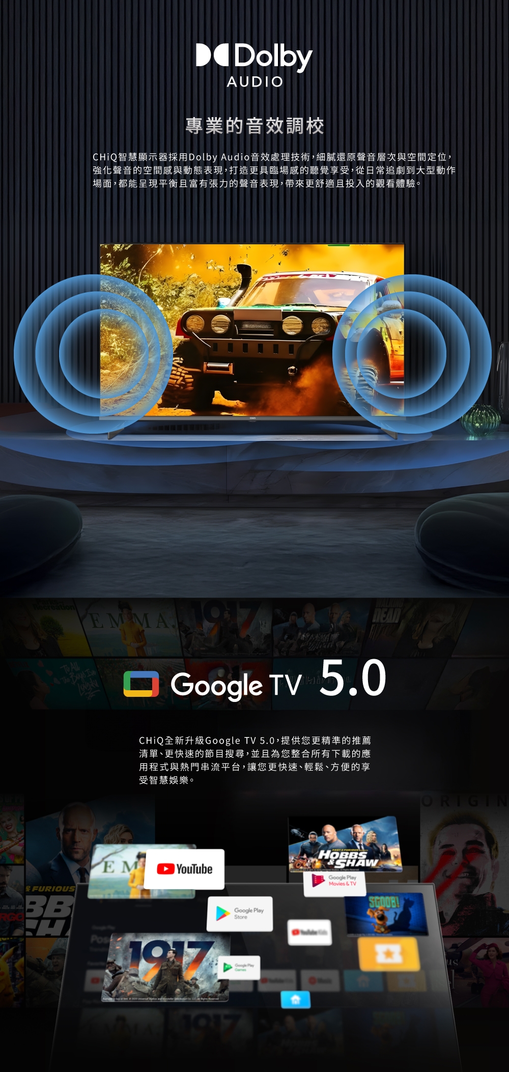 CHiQ啟客 QLED量子點廣色域 Google TV 5.0 智慧顯示器 CQ-QX250系列 (基本安裝) 無視訊盒