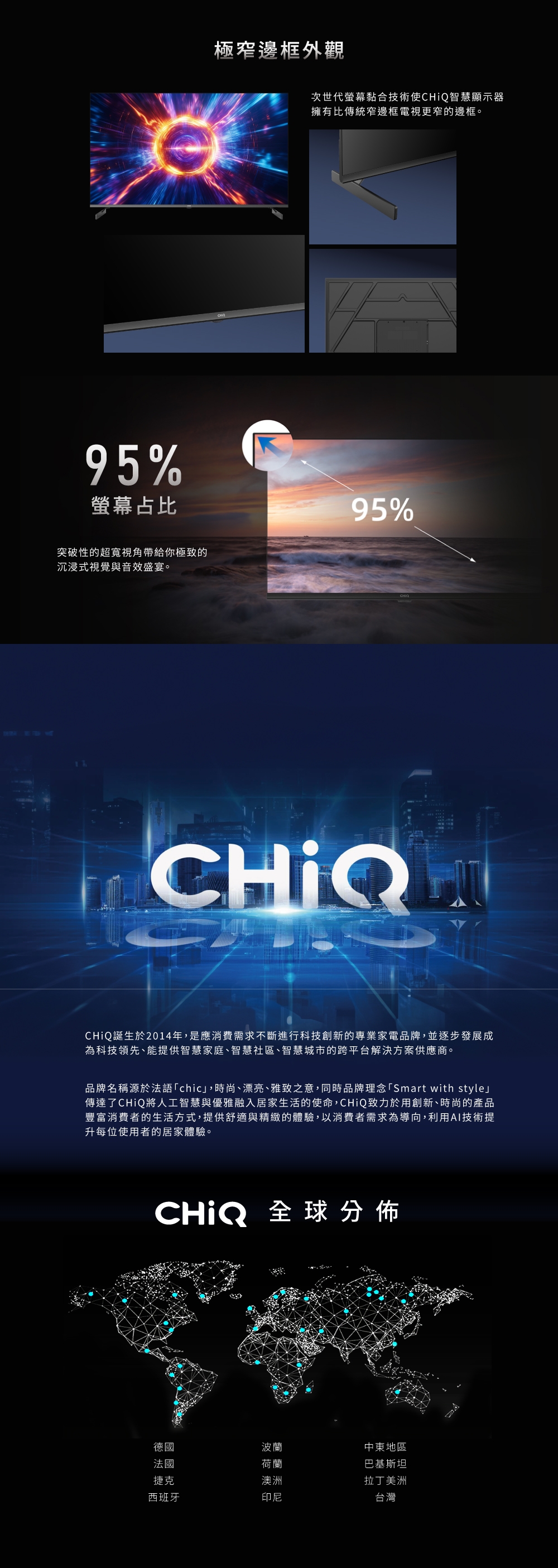 【CHiQ 啟客】*含安裝* 43型4K HDR全面屏智慧連網液晶顯示器(CQ-43AF7P9) 含舊機回收