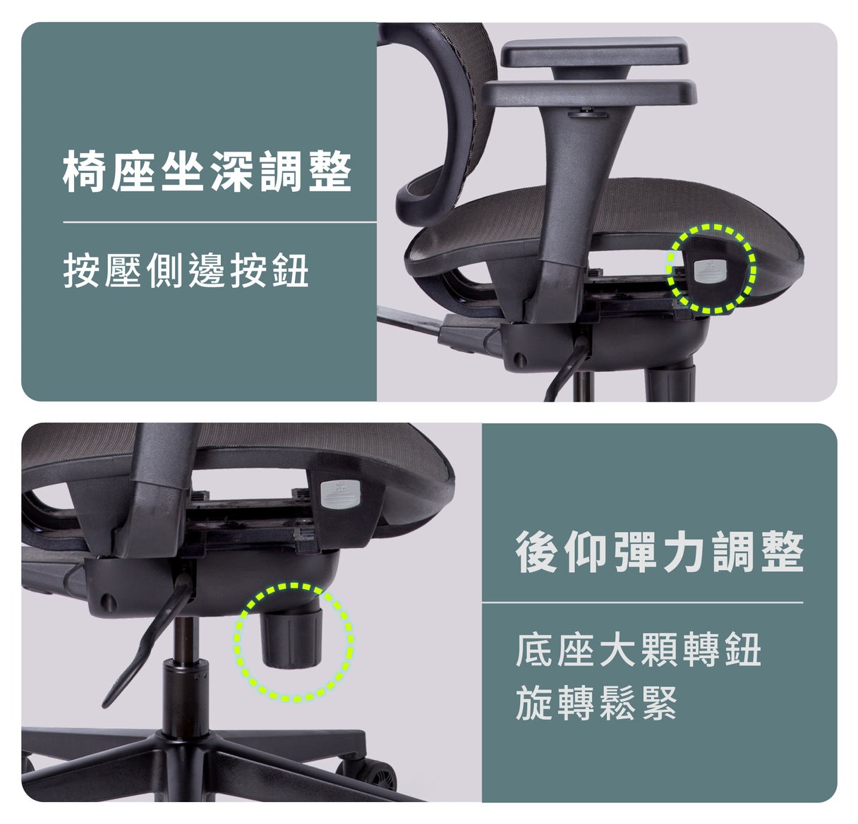 NU Chair鋁合金腳|健康主管椅 綠色