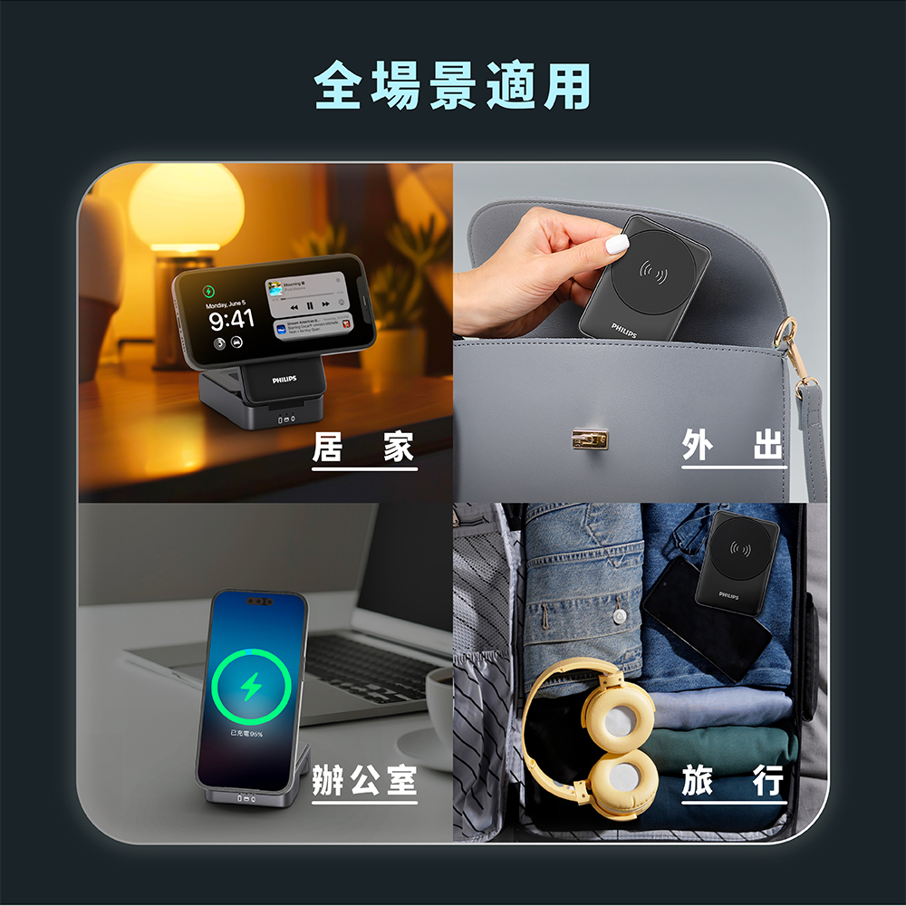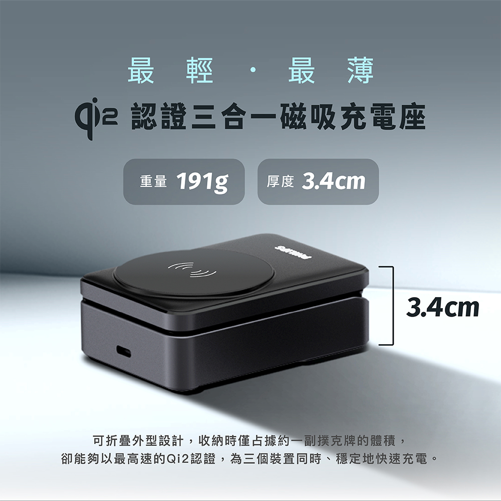 【PHILIPS飛利浦】DLK3547Q 無線充電座 Qi2 三合一磁吸充電座