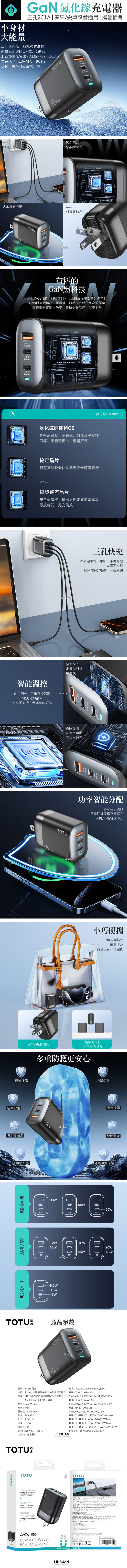 TOTU 拓途 Racing系列 雙孔 Type-C + USB GaN氮化鎵充電器/充電頭 20W快充 PD + QC 黑色 1個