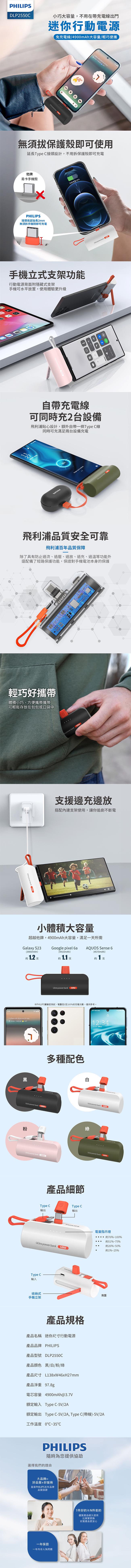 PHILIPS 直插式口袋行動電源 口袋行動電源 放口袋 4900mAh - 白色