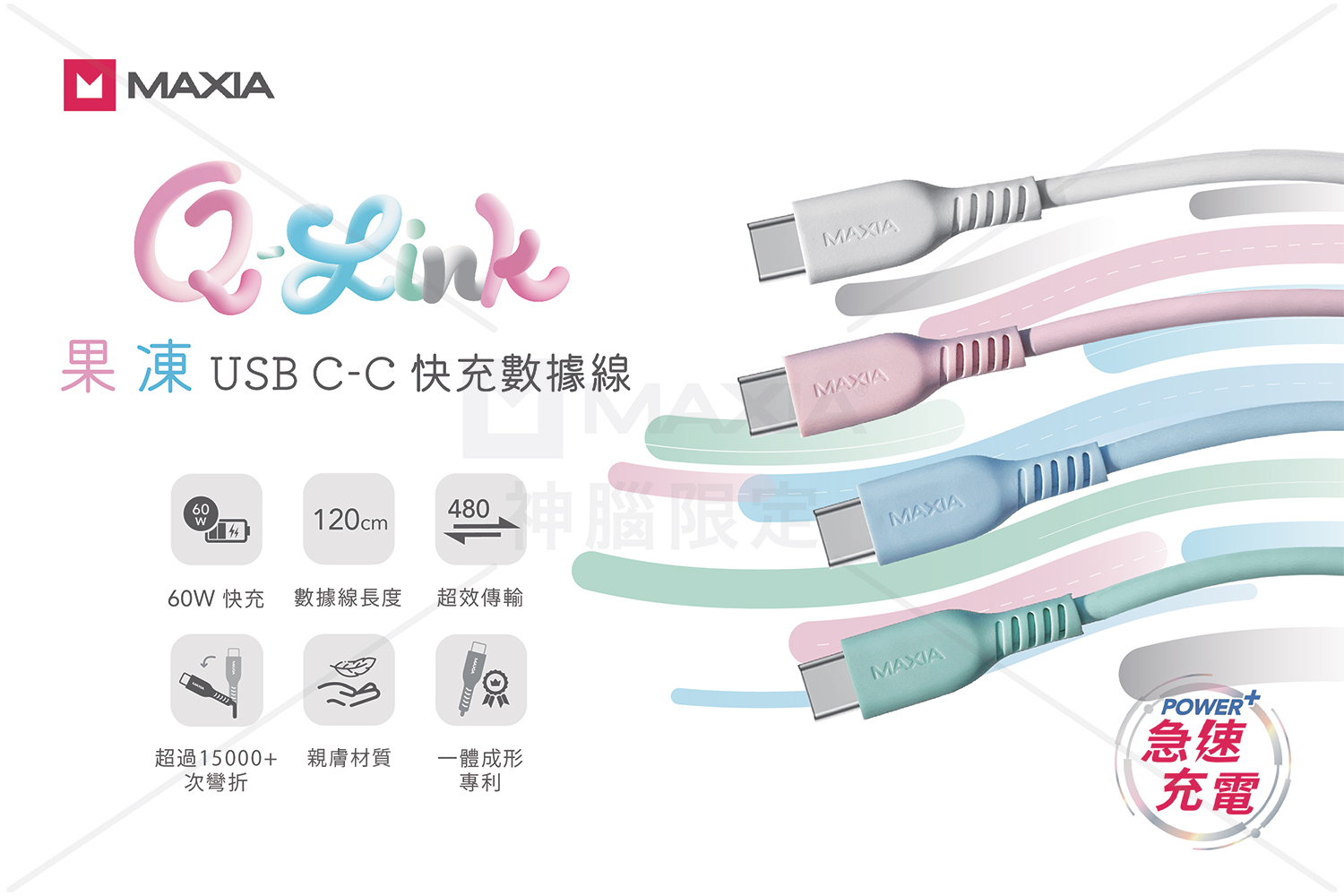 【MAXIA】氮化鎵GaN 47W急速快充組-粉線(MPC-A47W+MQC-250)