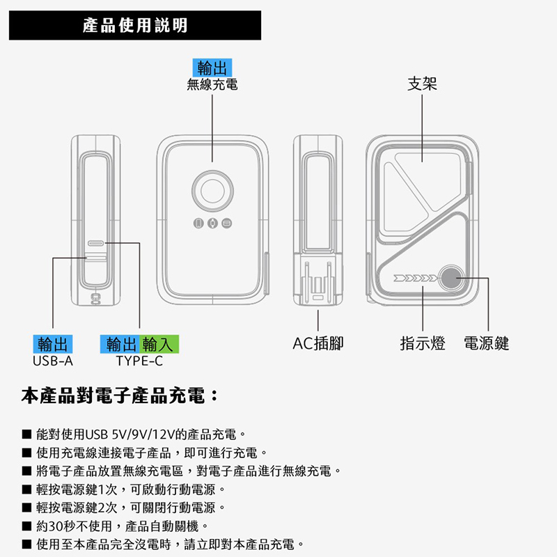 【LaPO】多功能無線充行動電源(WT-03CM) 迷霧灰